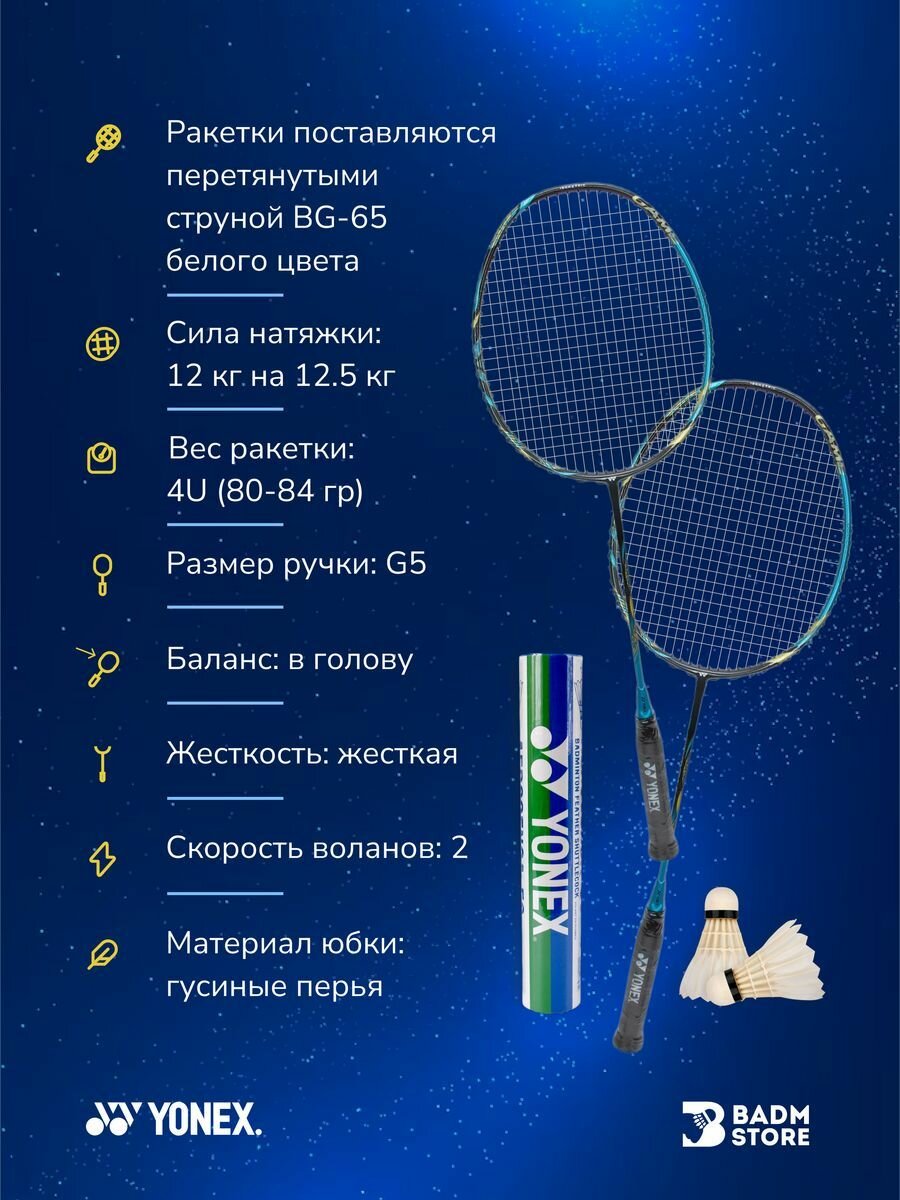 Набор для бадминтона Yonex 88S Game DUO (2шт 88S Game + AS-20(2) + AC102EX-3(3шт)Black) интересное: