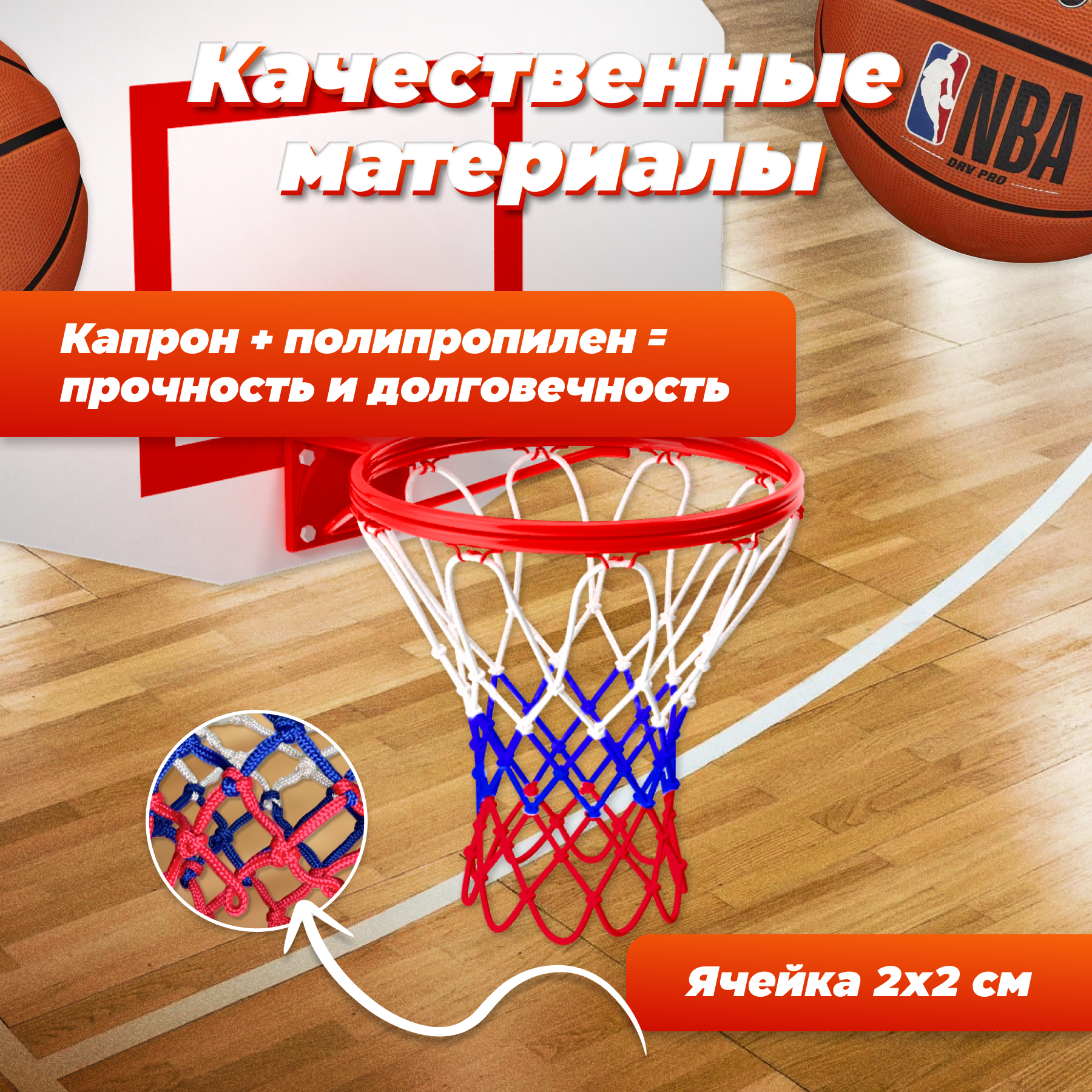 Баскетбольная сетка для кольца для улицы нить 4,5 мм триколор веревка в комплекте интересное:
