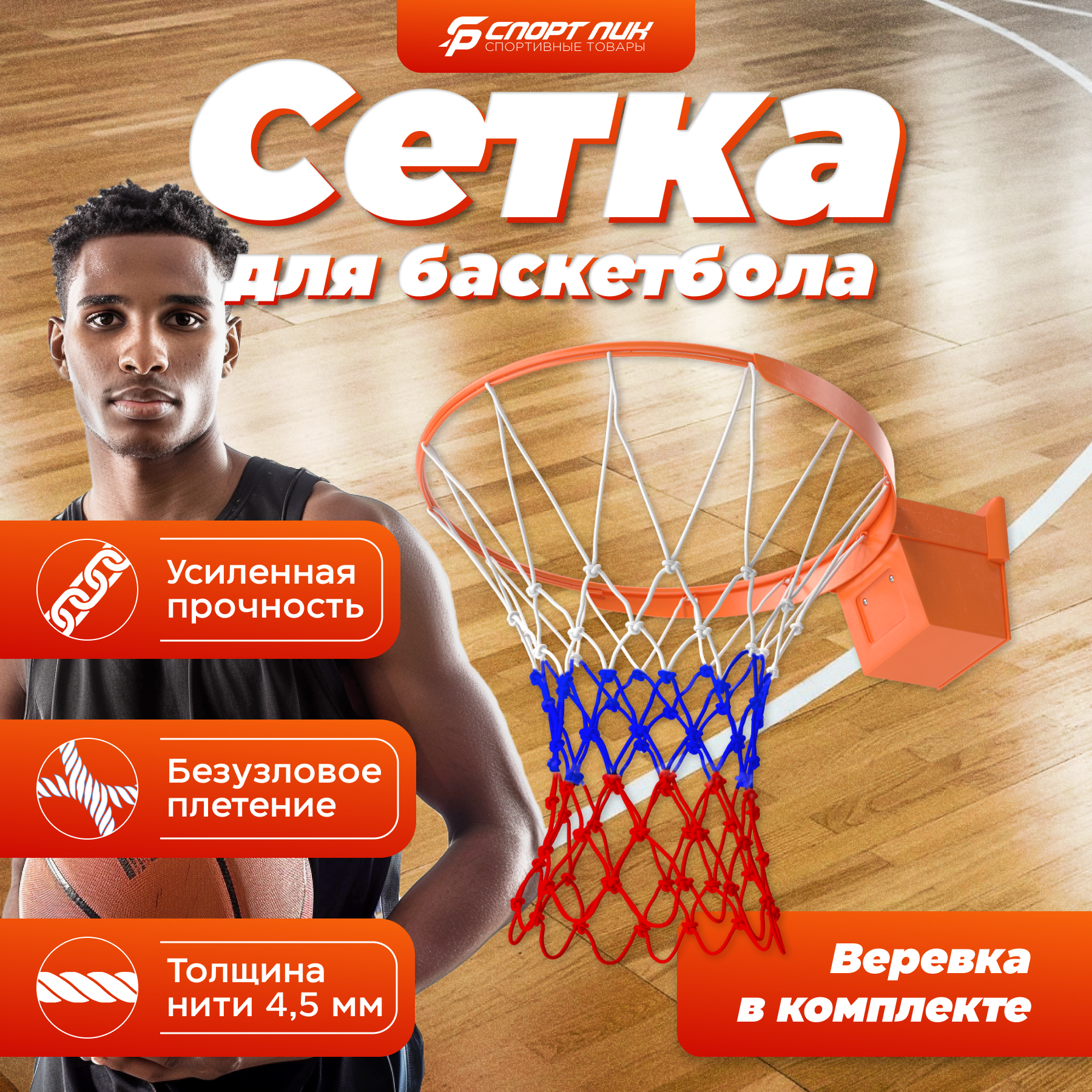 Ниже Вы можете прочитать отзывы на Баскетбольная сетка для кольца для улицы нить 4,5 мм триколор веревка в комплекте, ознакомится с подробными характеристиками, посмотреть интересные обзоры и фотографии на Баскетбольная сетка для кольца для улицы нить 4,5 мм триколор веревка в комплекте.
