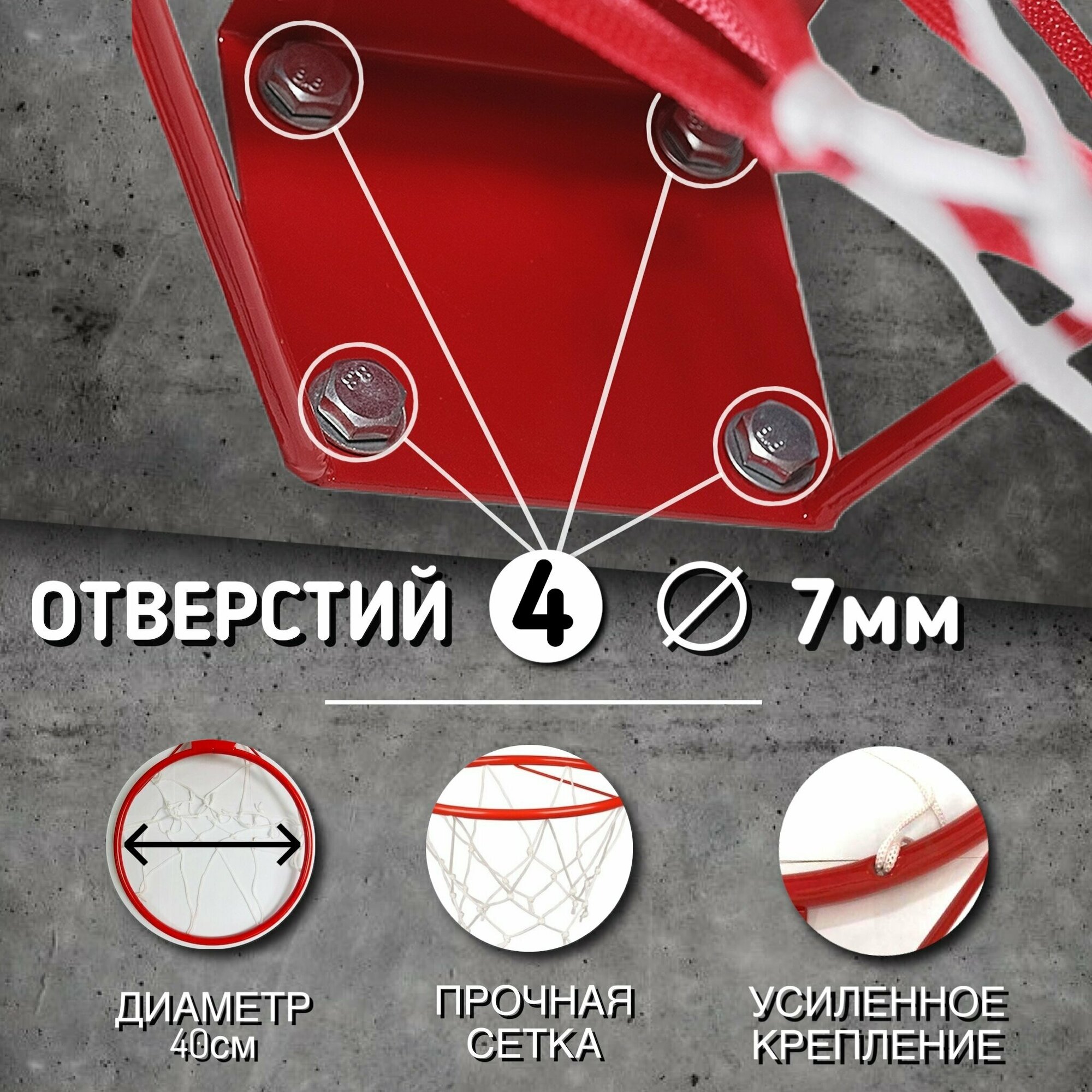 Корзина для баскетбола усиленная под большой мяч, Баскетбольное кольцо для мяча №5-7, диаметр 38см интересное: