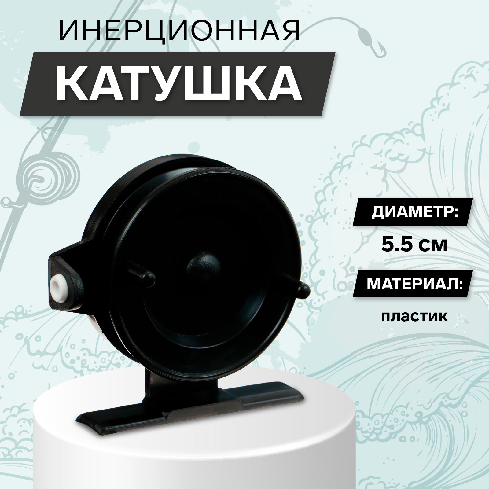 Катушка инерционная, диаметр 5.5 см, направляющая лески, пластик, цвет черный, 1 шт интересное: