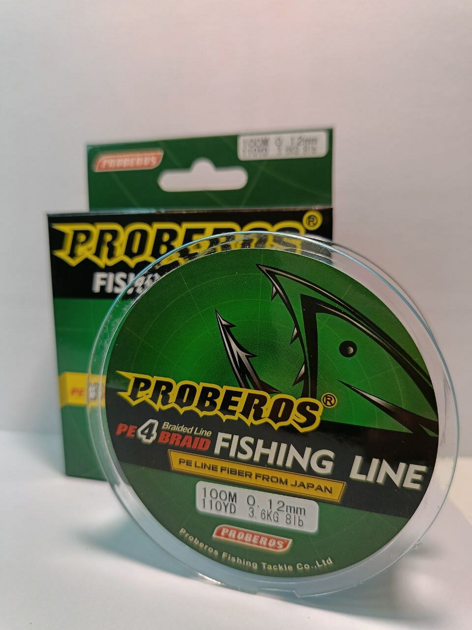 Плетеный шнур для рыбалки PROBEROS зелёный 100м 0.12мм(0.6 по Японии) 8LB до 3,6кг/ Рыбалка, плетёный шнур для спининга, для фидера, для катушки