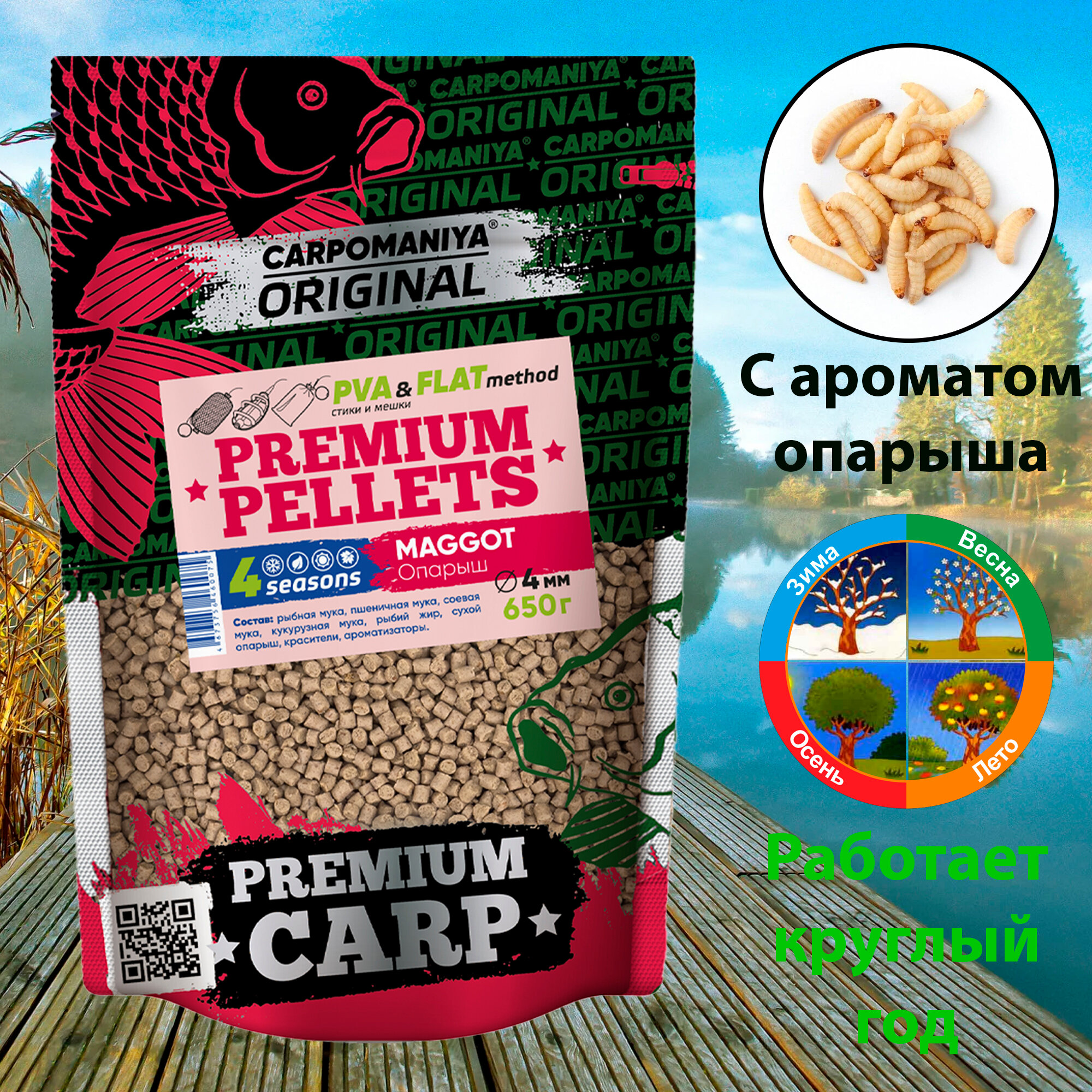 Набор 2шт PREMIUM PELLETS MAGGOT (опарыш) 4мм \ PREMIUM PELLETS STRAWBERRY + PLUM (клубника + слива) 2мм 650гр интересное: