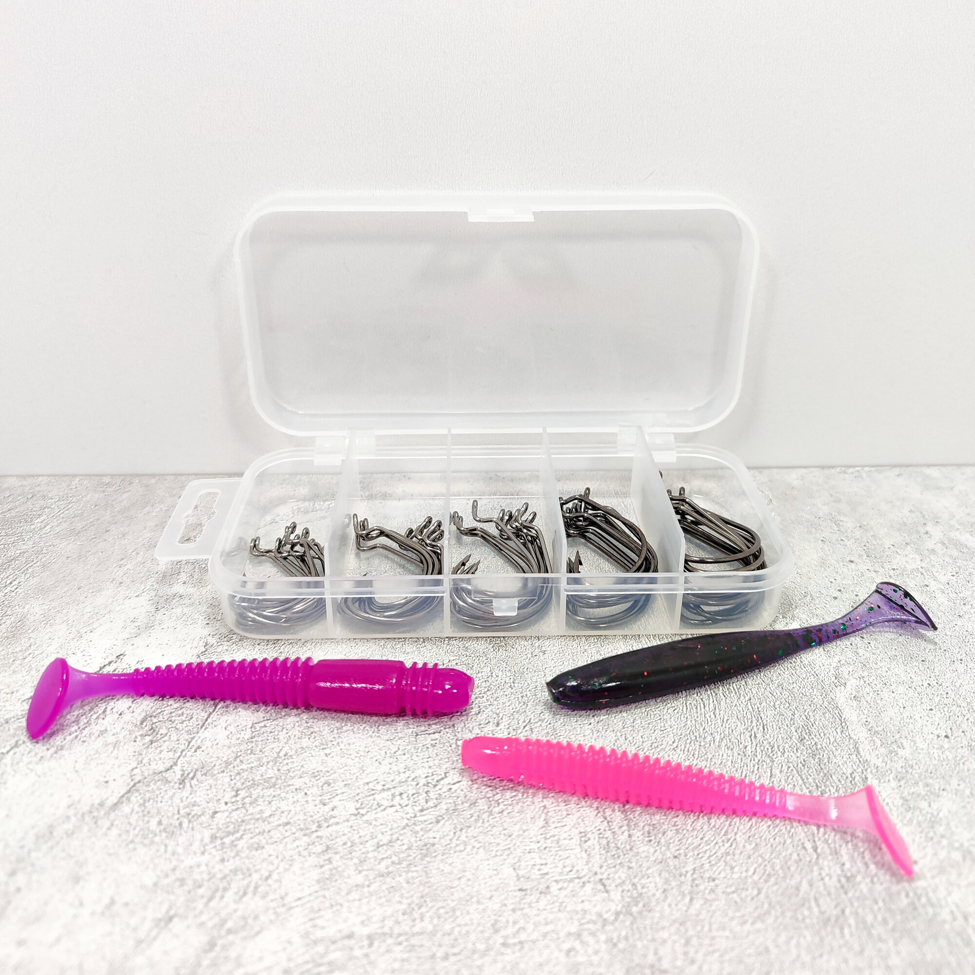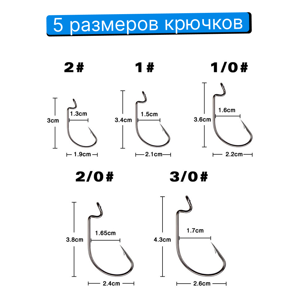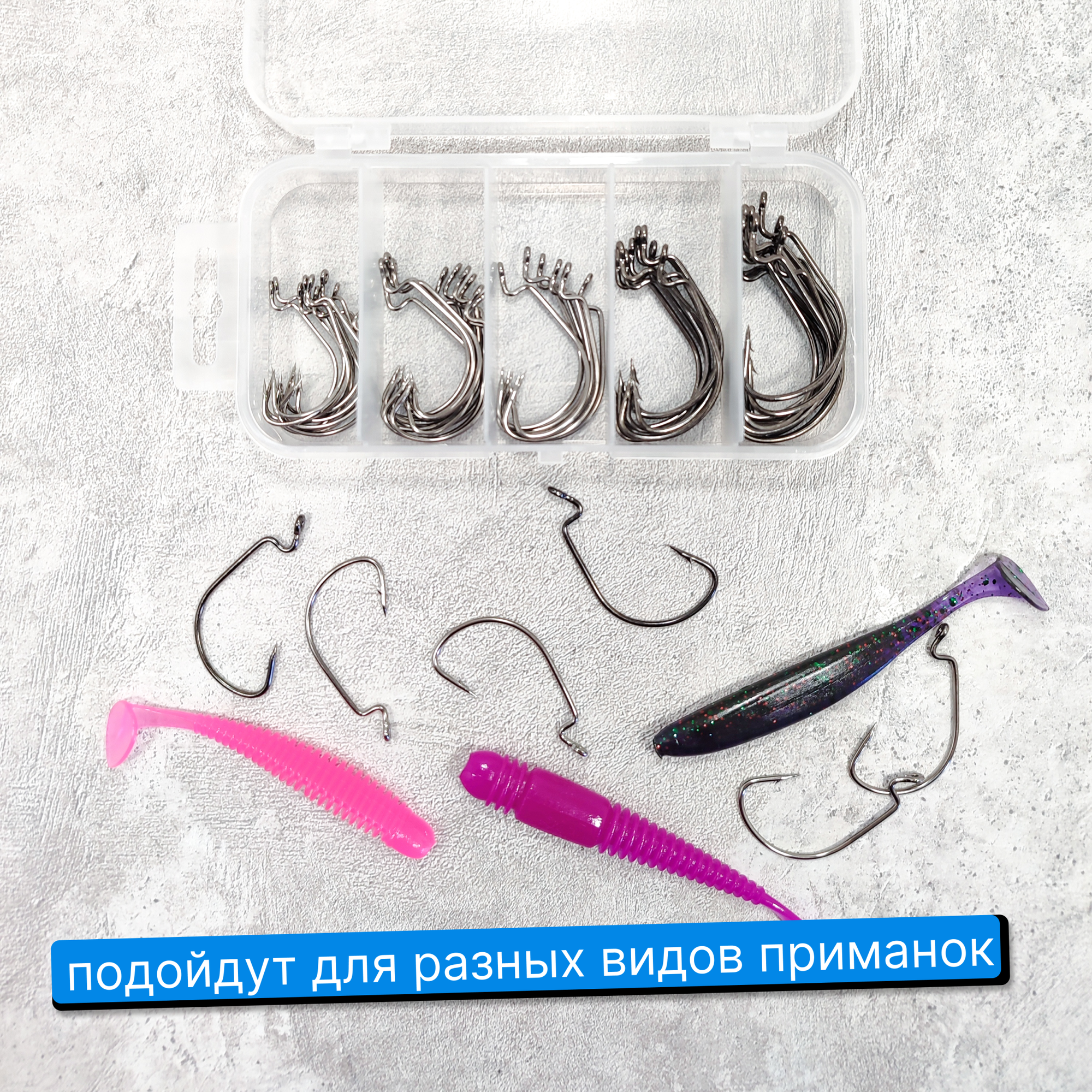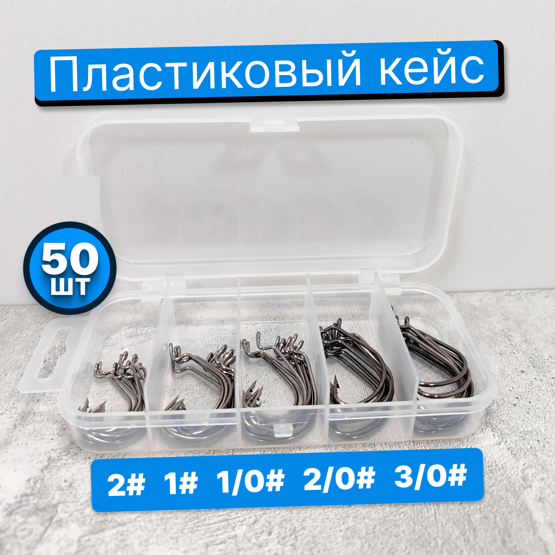 Набор офсетных крючков в пластиковом кейсе 50 штук для рыбалки интересное: