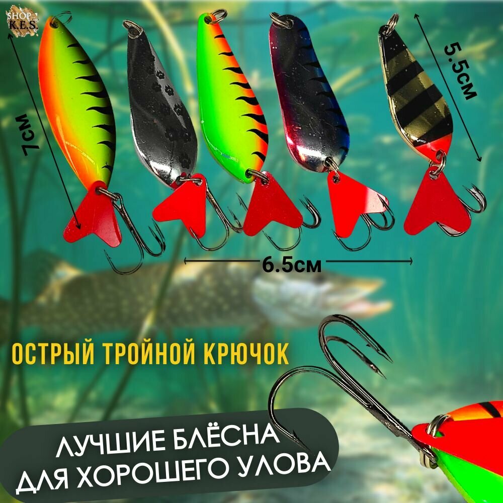 Блесна колебалка Атом 5шт в боксе для рыбалки, набор блесен на щуку, окуня, жереха,судака интересное: