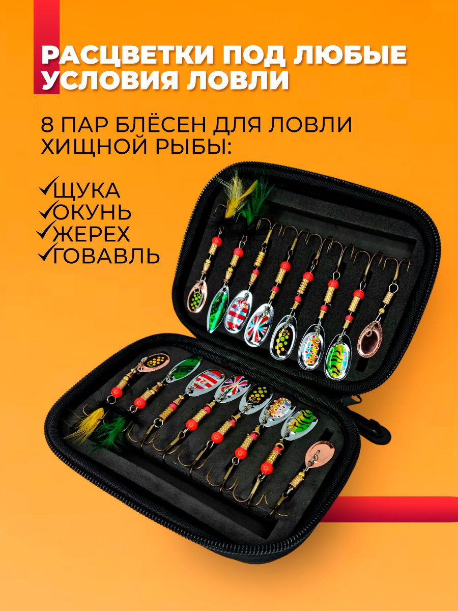 Подарочный набор блёсен вертушек для рыбалки на щуку в кейсе 2.3гр интересное: