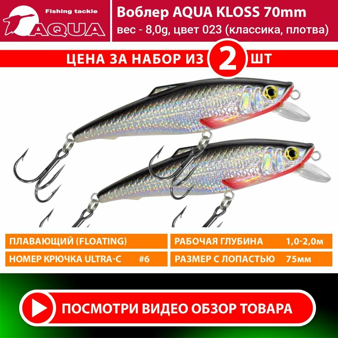 Купить Воблер для рыбалки плавающий AQUA Kloss 70mm 8g заглубление от 1 до 2m цвет 023 2шт