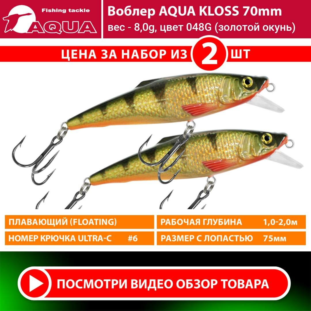 Купить Воблер для рыбалки плавающий AQUA Kloss 70mm 8g заглубление от 1 до 2m цвет 048G 2шт