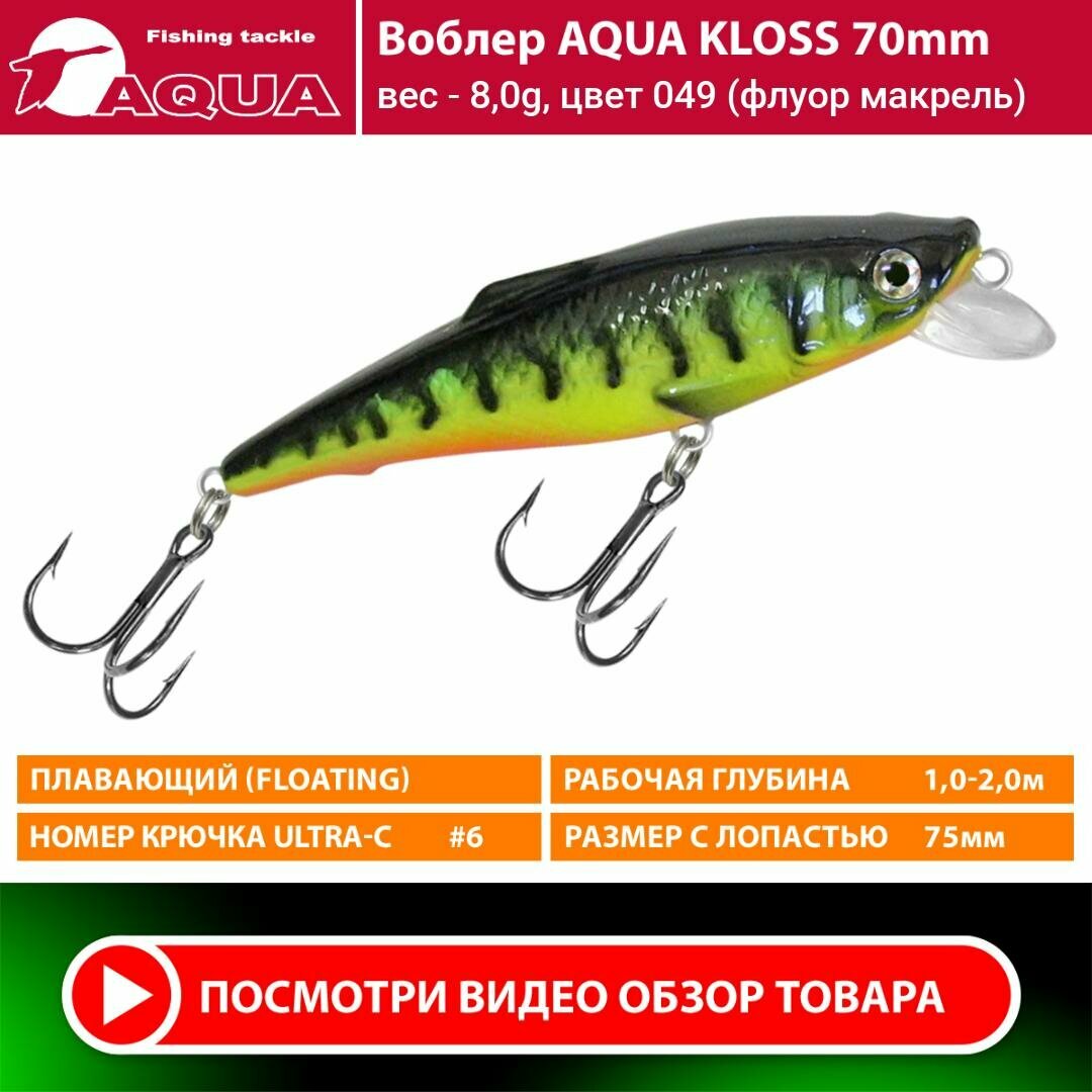 Купить Воблер для рыбалки плавающий AQUA Kloss 70mm 8g заглубление от 1 до 2m цвет 049