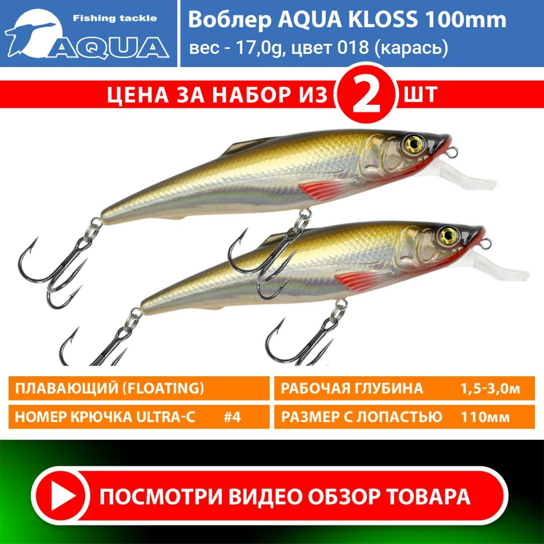 Купить Воблер для рыбалки плавающий AQUA Kloss 100mm 17g заглубление от 1.5 до 3m цвет 018 2шт