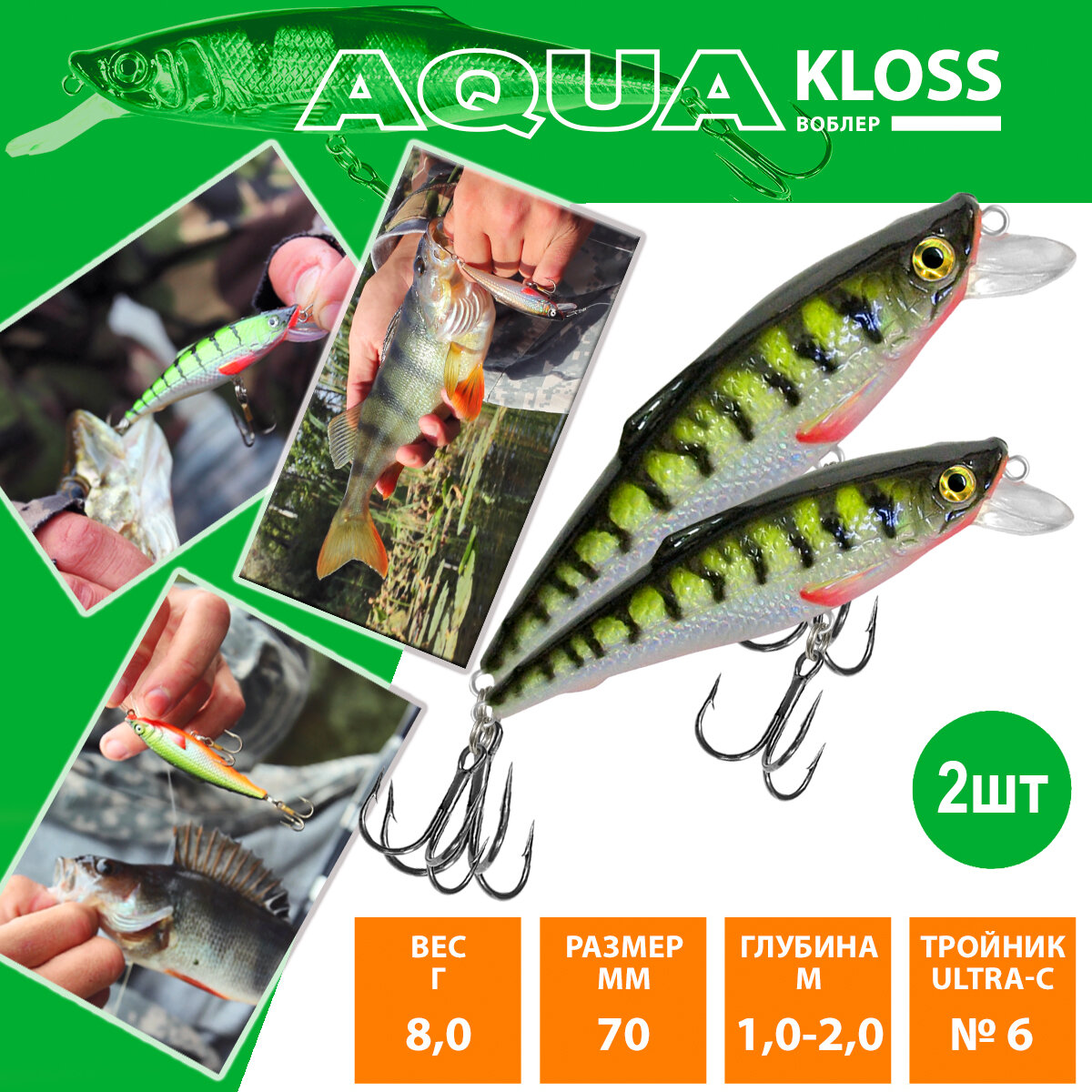 Купить Воблер для рыбалки плавающий AQUA Kloss 70mm 8g заглубление от 1 до 2m цвет 108 2шт