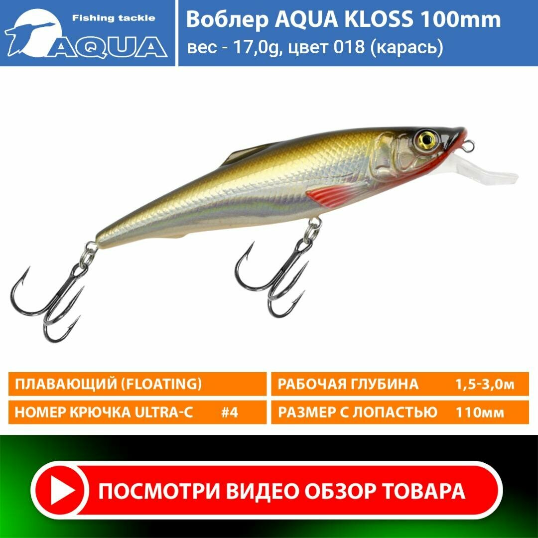 Купить Воблер для рыбалки плавающий AQUA Kloss 100mm 17g заглубление от 1.5 до 3m цвет 018
