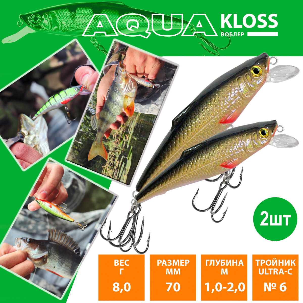 Купить Воблер для рыбалки плавающий AQUA Kloss 70mm 8g заглубление от 1 до 2m цвет 018 2шт