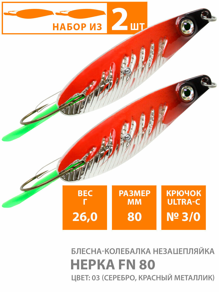 Блесна колебалка незацепляйка для рыбалки AQUA Нерка Fire 80mm 26g цвет 02 2шт