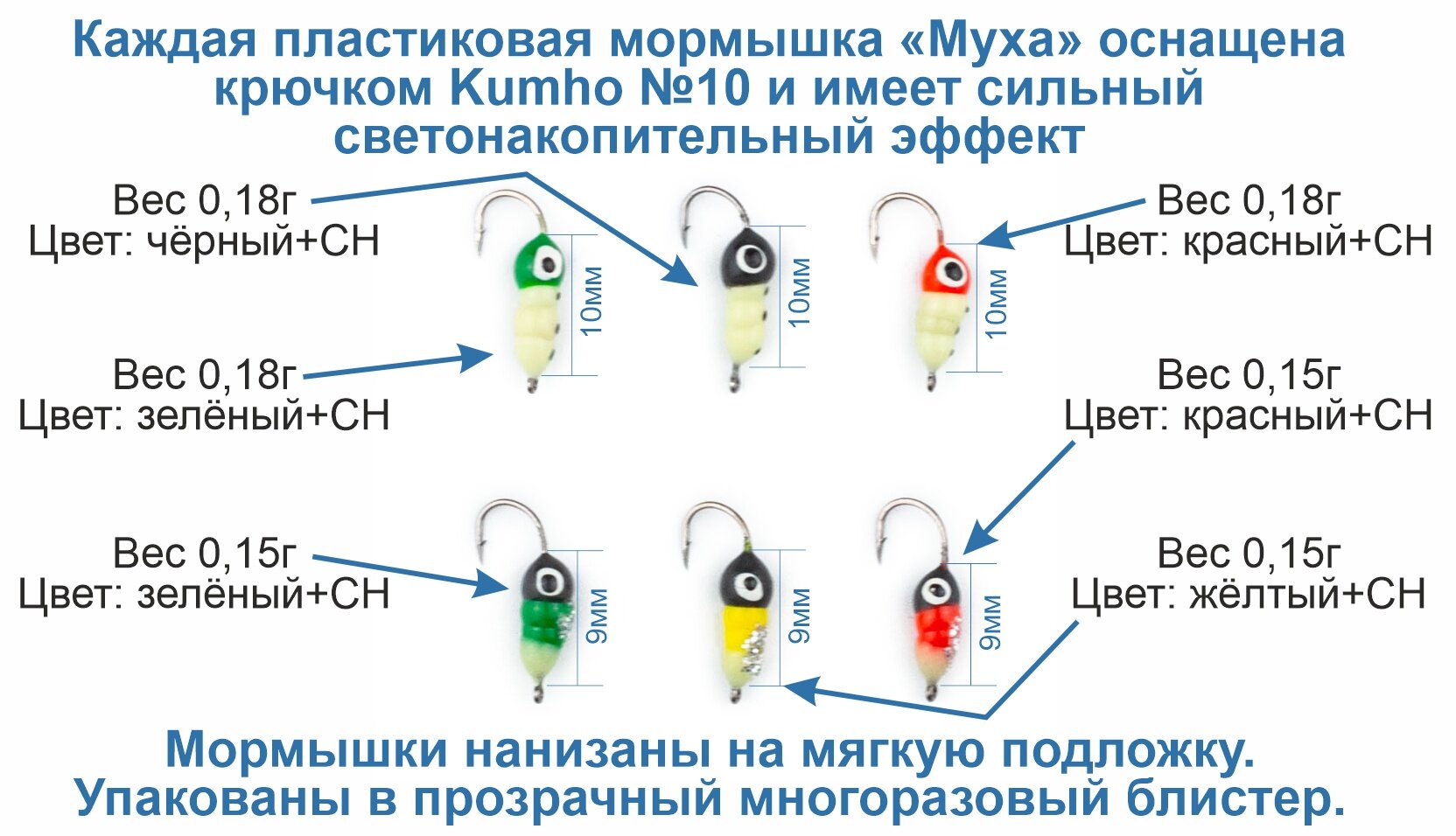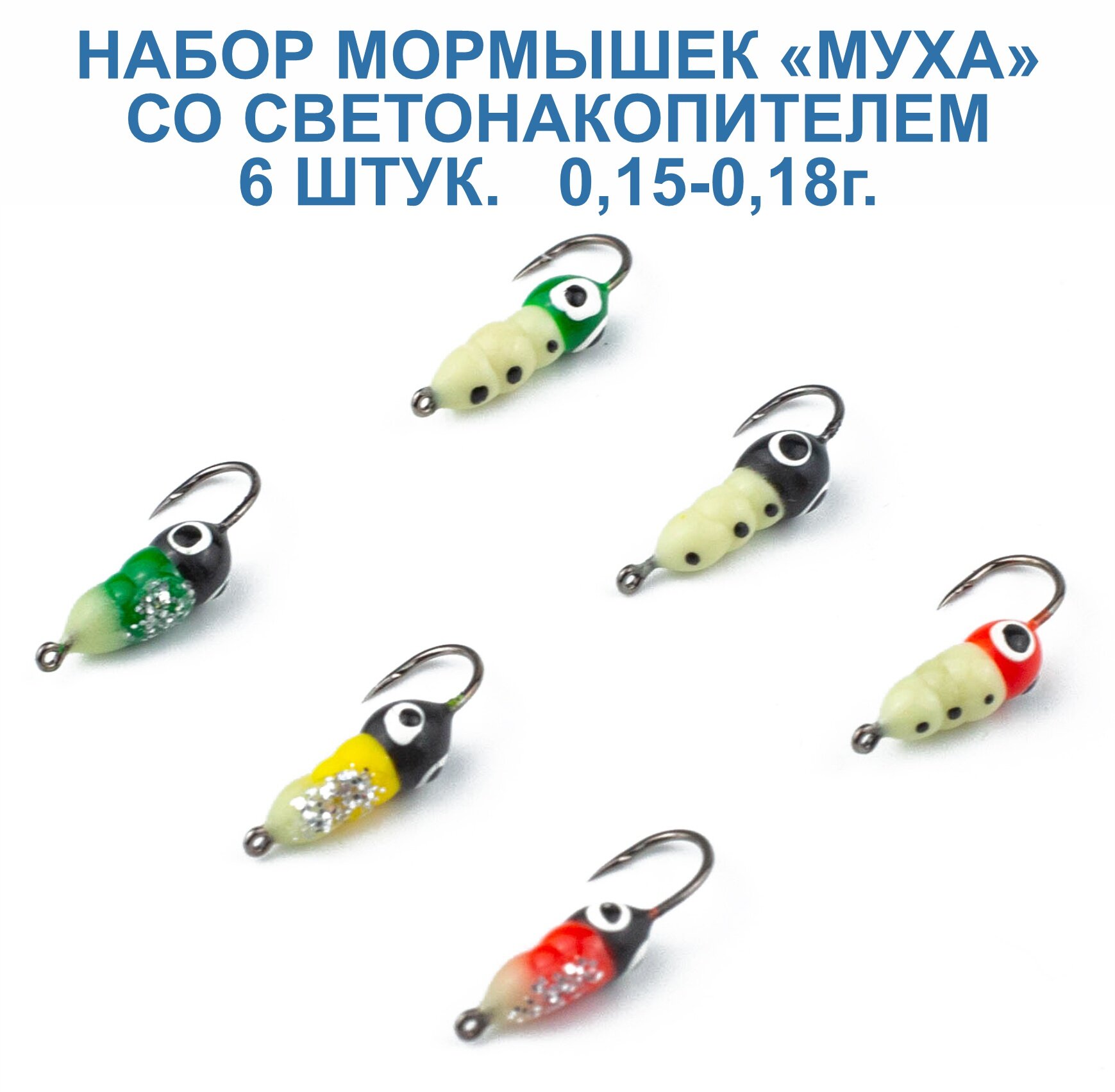 | Цвет товара | Мормышка пластиковая "Муха". 6 штук. Светонакопитель. Крючок Kumho. |