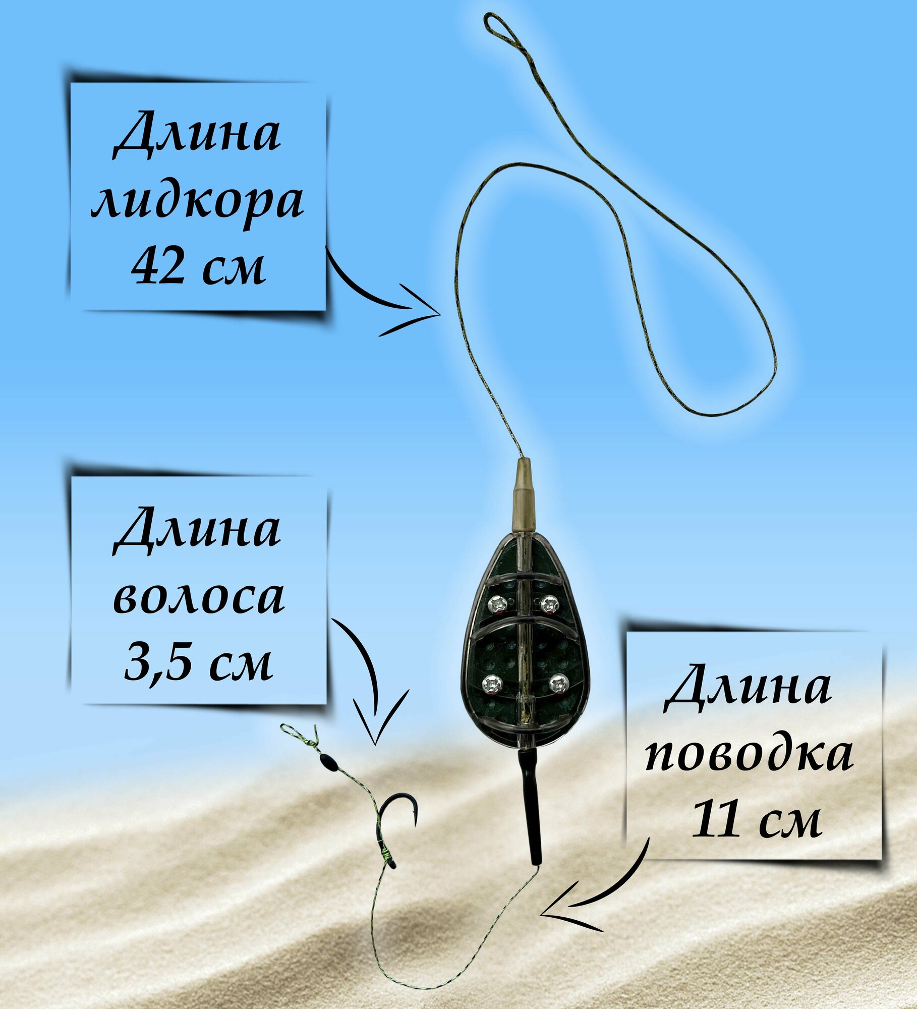 Флэт-фидер снасть на волос в сборе - 80 грамм - 3шт. + пресс-форма / Кормушка для рыбалки / Готовый карповый монтаж Флэт, Донка интересное: