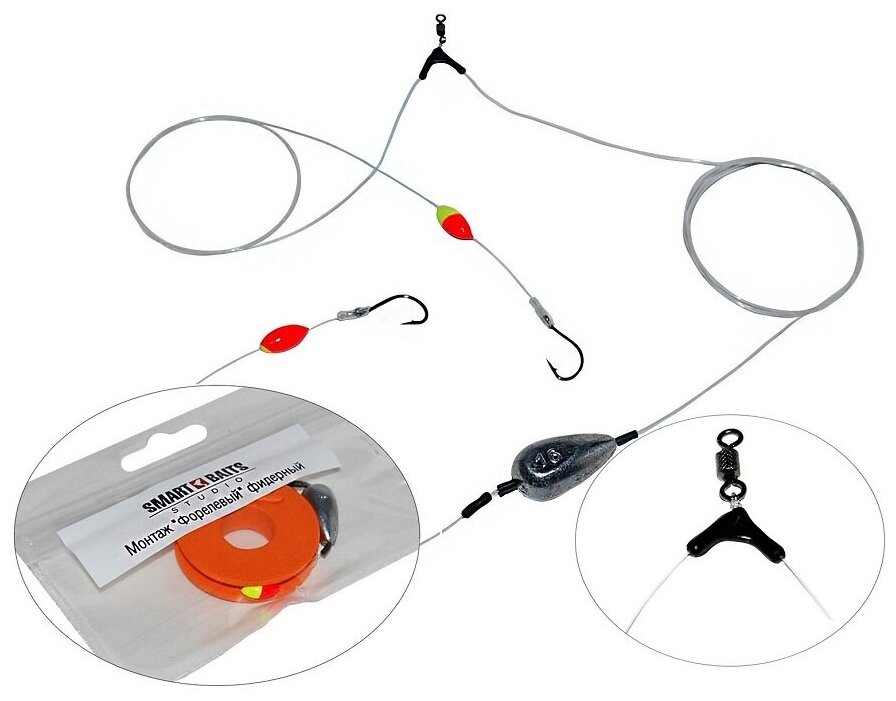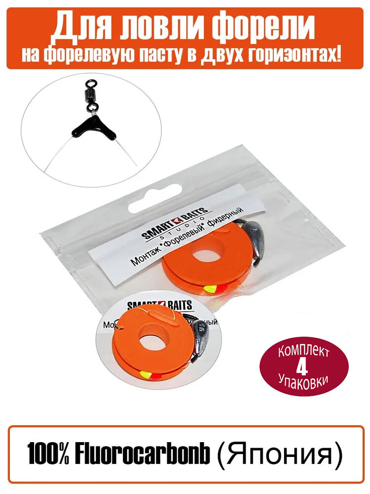 Фидерная оснастка Форелевая 1шт/уп 4 уп Smart Baits Studio, монтаж форелевый, форель на пасту, флюрокарбон, оснастка с отводом для ловли форели интересное: