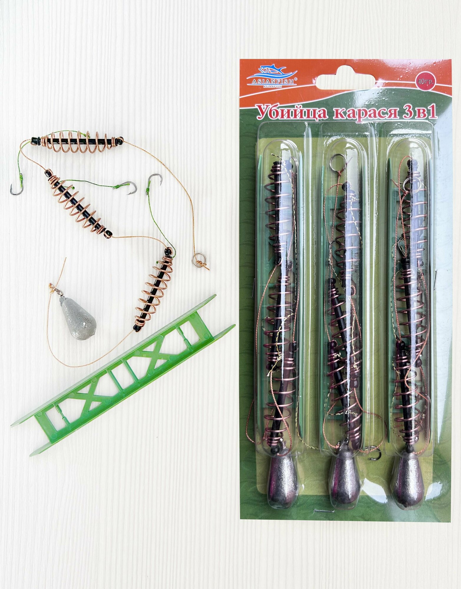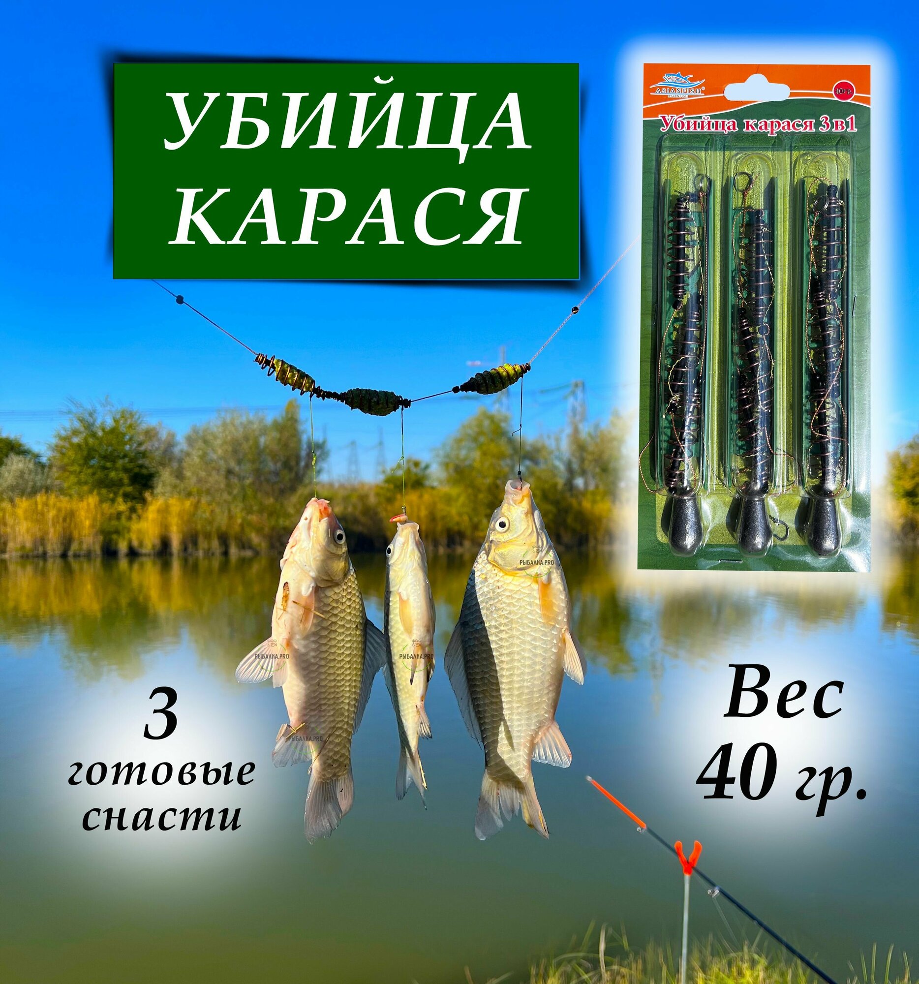 Монтаж рыболовный Фидер / Снасть "Убийца карася" 40гр. - 3шт. / Донная(донка) оснастка на карася, карпа, амура, леща, плотву интересное: