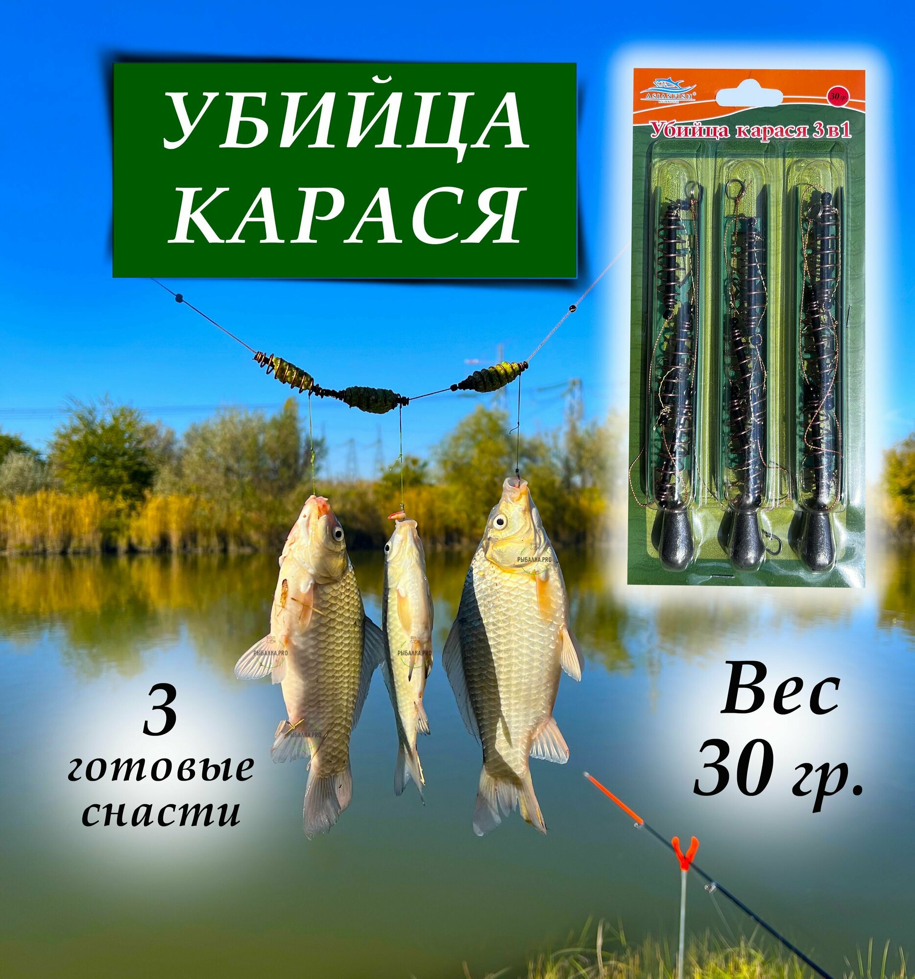 Фидер/ Снасть "Убийца карася" 30гр. - 3шт. / Донная (донка) оснастка на карася, карпа, амура, леща, плотву интересное: