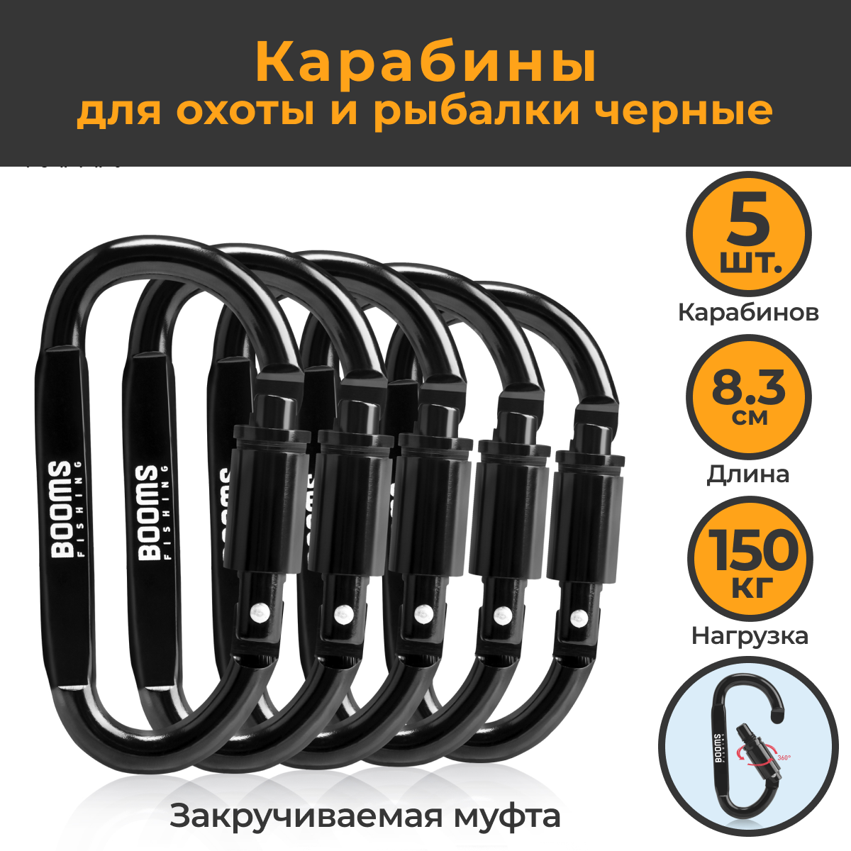 Купить Профессиональный Карабин для охоты и рыбалки (8.3 см), 5 штук, Черный крепление Booms Fishing