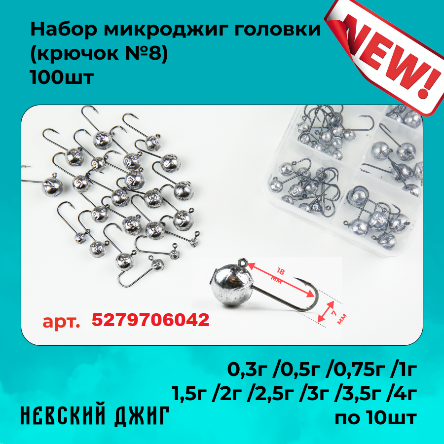 Грузила Микроджиг головки 0.3-4 гр (крючок рыболовный №8) набор 100 шт в контейнере на спиннинг ультралайт