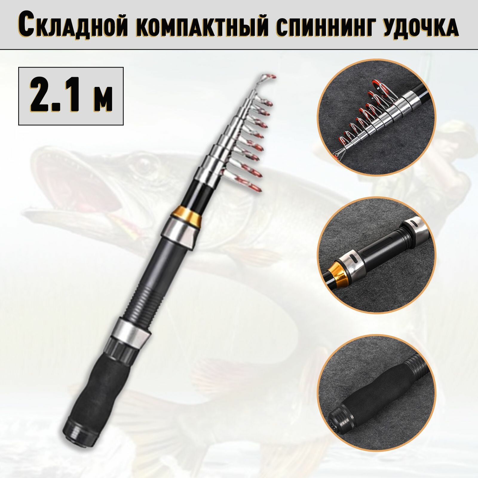 Купить Складной компактный спиннинг удочка/ Ультракороткое портативное телескопические удилище 2.1 метра
