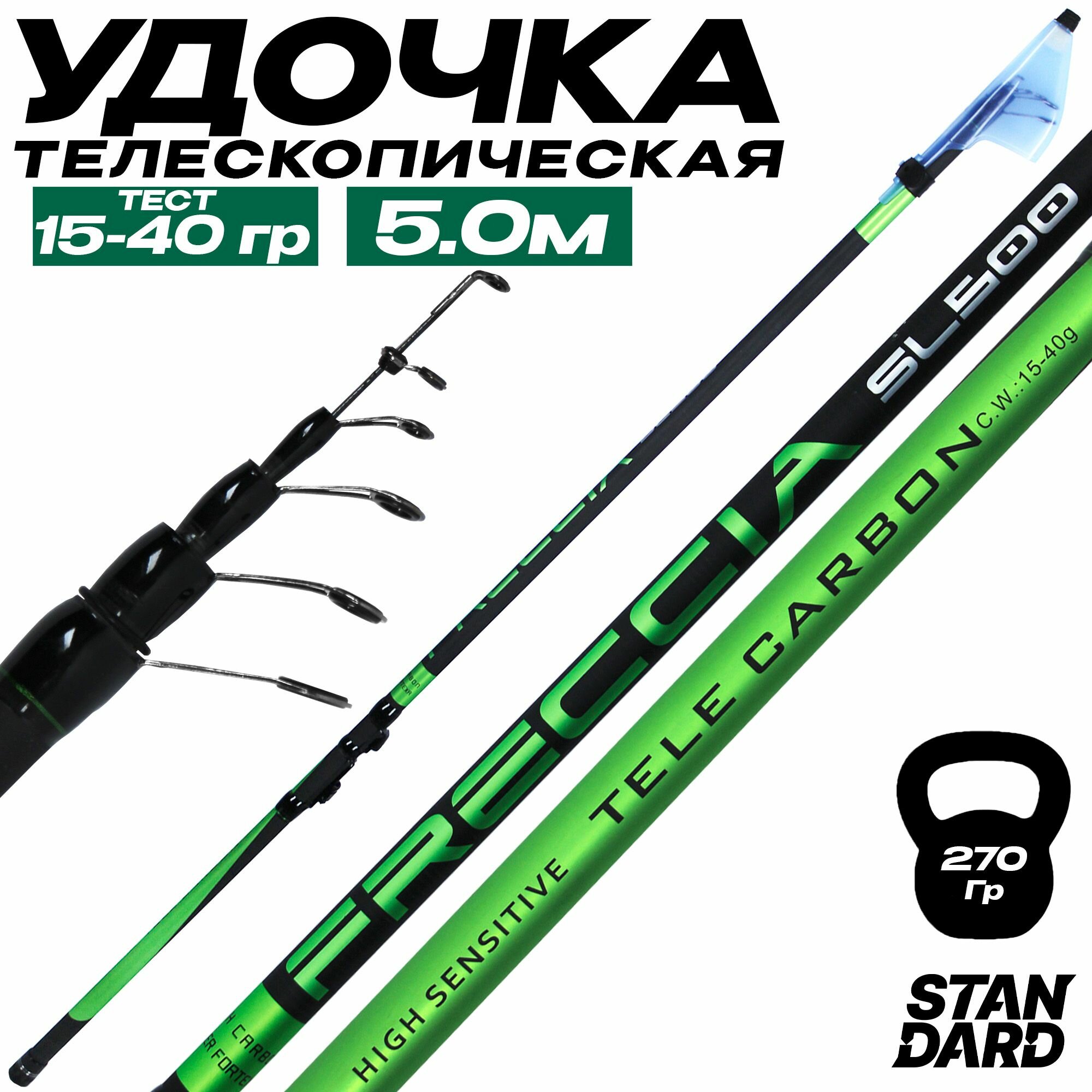 Купить Удилище телескопическое FRECCIA 5 м, тест 15-40 г средне-быстрый строй. Цвет: зеленый