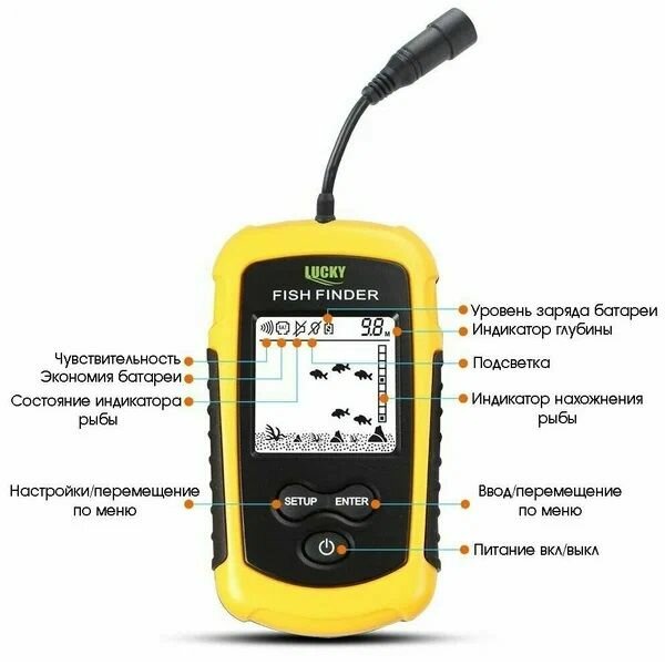 | Комплектация | Эхолот, сонар с кабелем , инструкция на русском языке, ремешок для ношения |