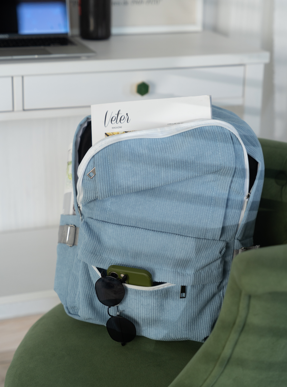 Рюкзак вельветовый, голубой интересное: