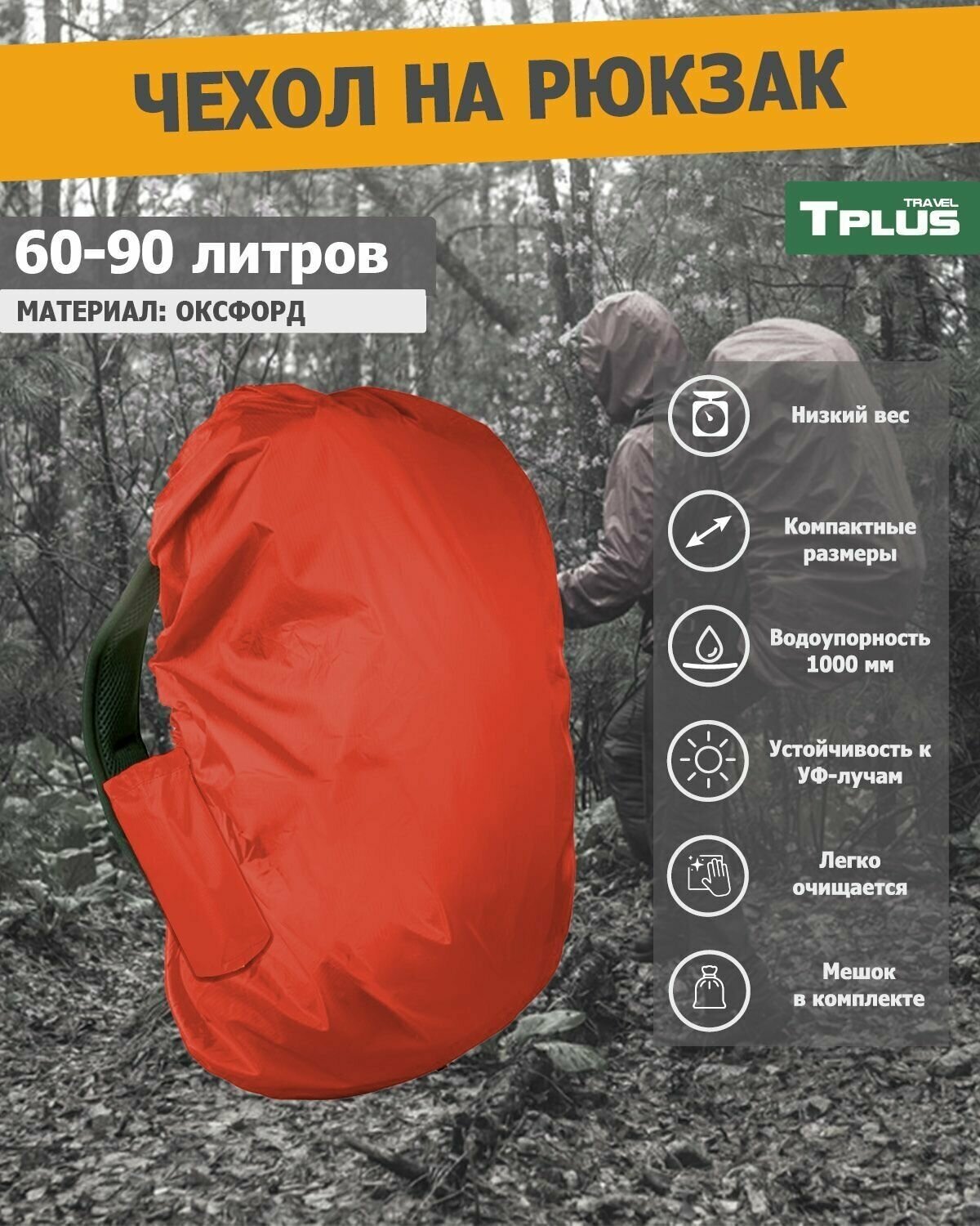 Чехол на рюкзак 60-90 литров (оксфорд 210, оранжевый), Tplus