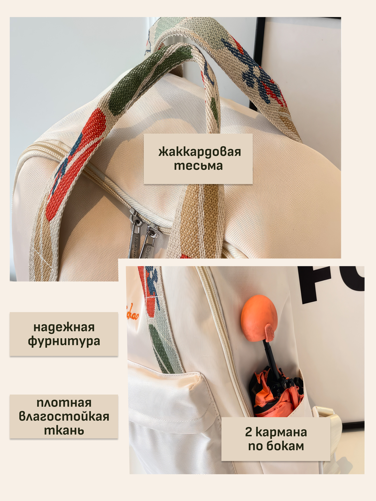 | Конструктивные особенности | боковые карманы / две лямки / мягкий / ручка сверху / эргономичные лямки |