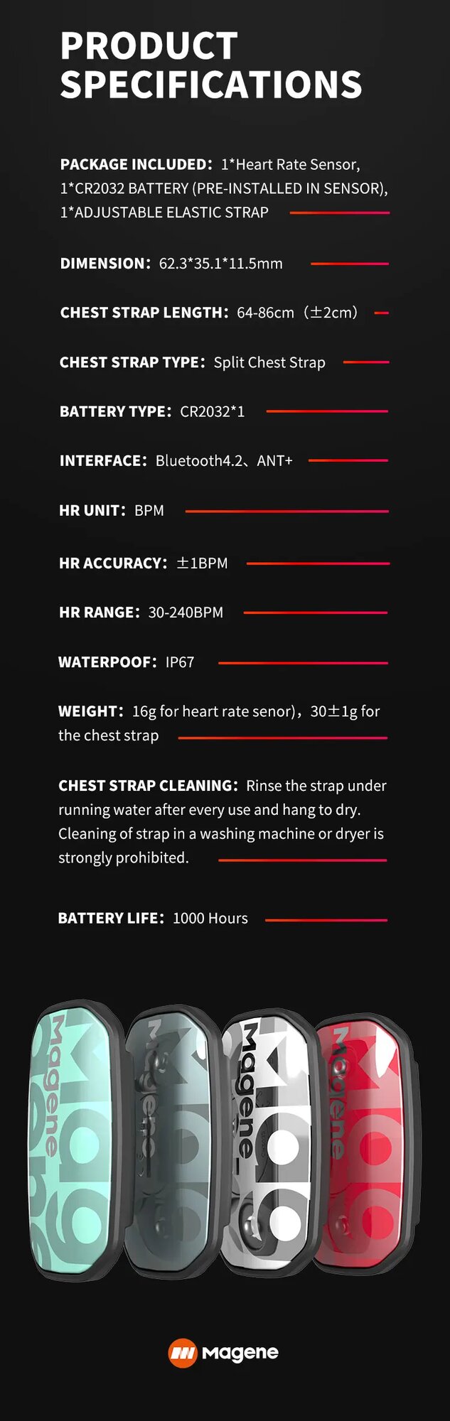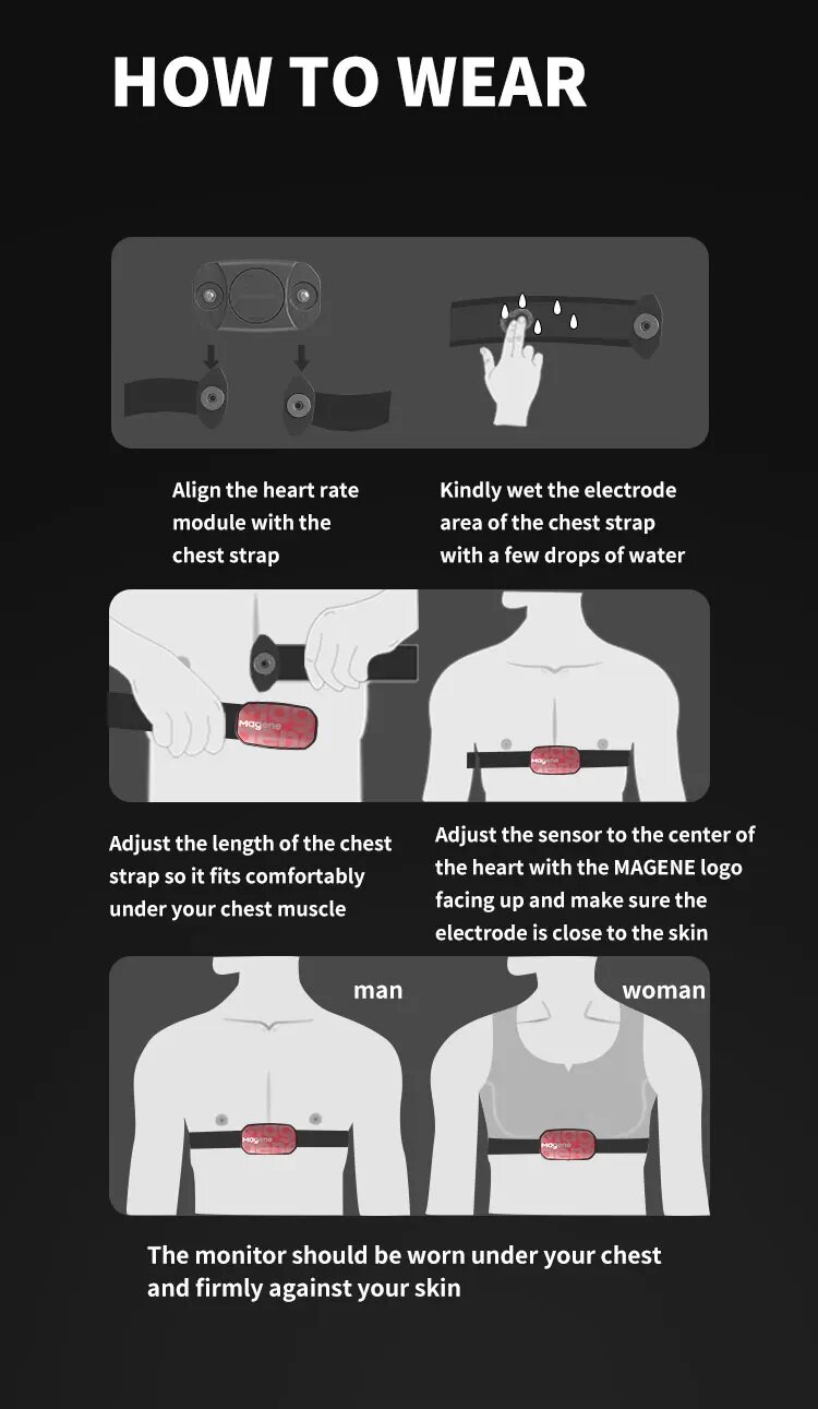 Ремешок Magene H603 для измерения сердечного ритма на груди, ANT + Bluetooth, водонепроницаемый спортивный пульсометр для бега, Черный интересное: