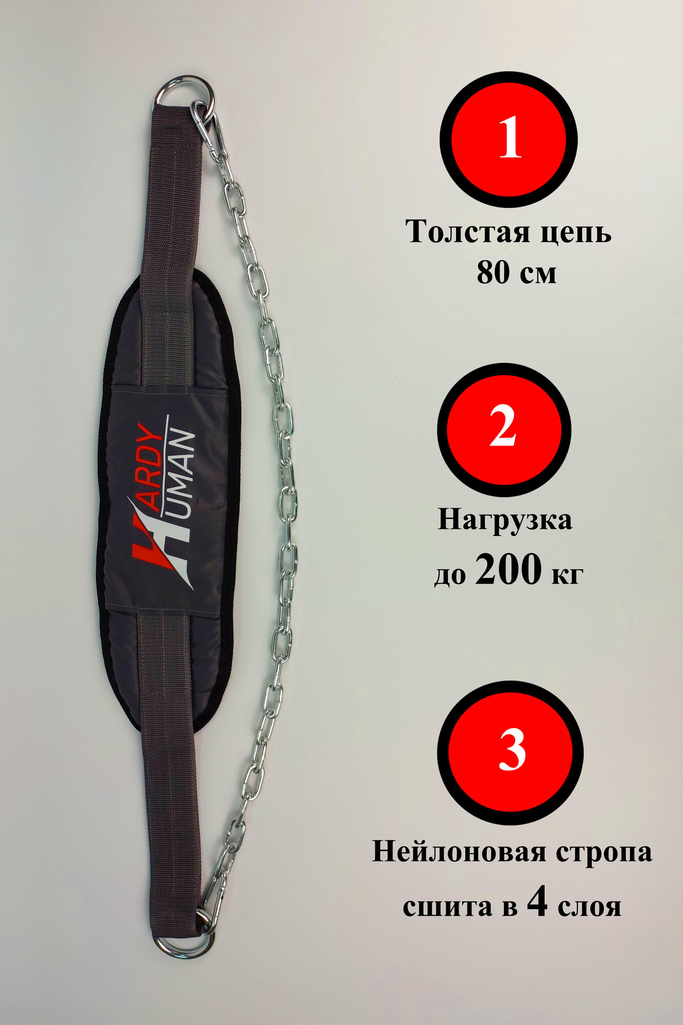 Пояс для подтягивания с цепью HardyHuman (gray) - атлетическое снаряжение для тренировок интересное: