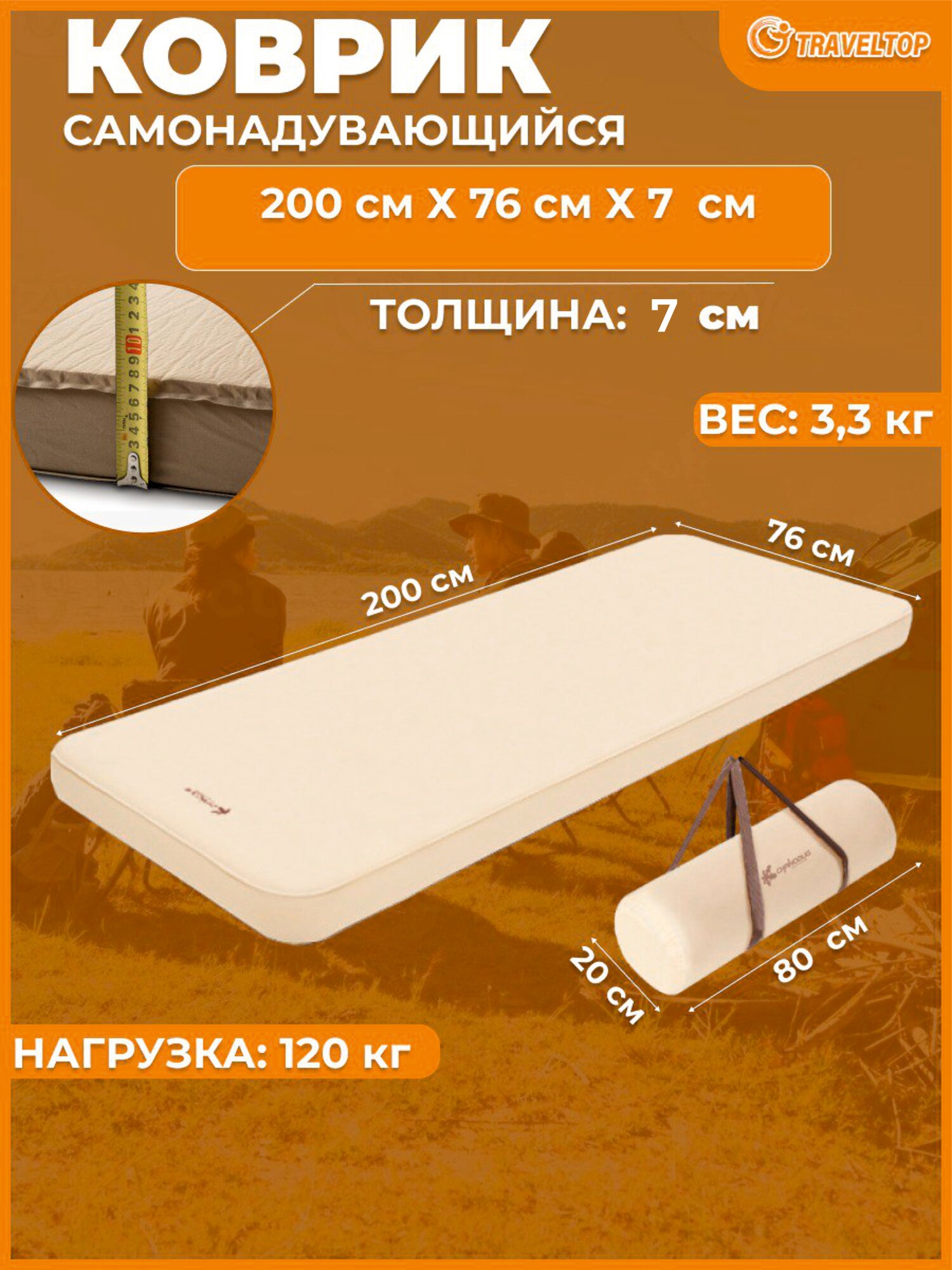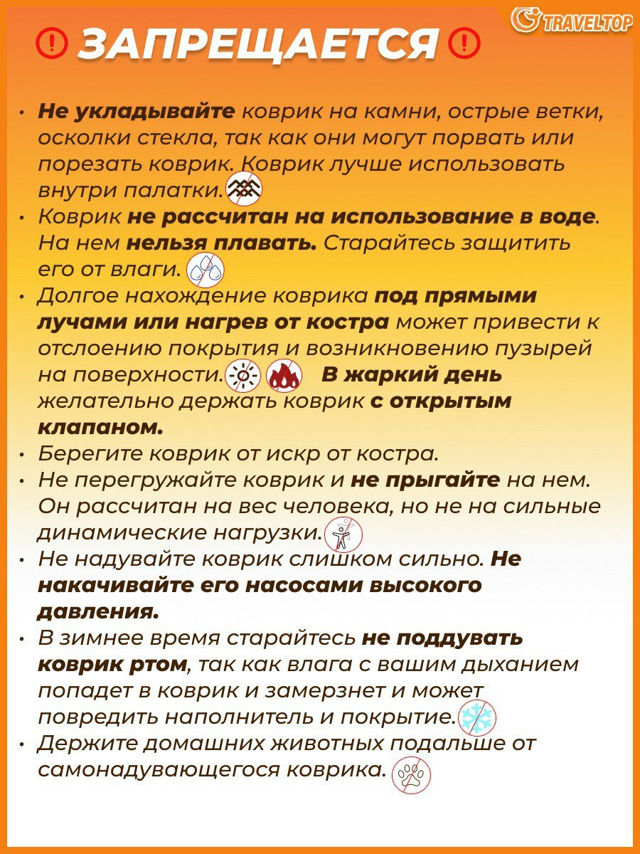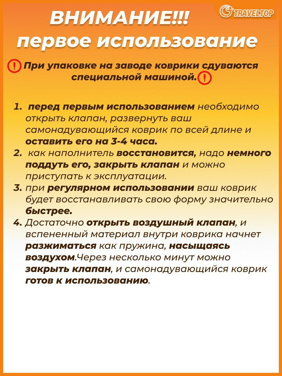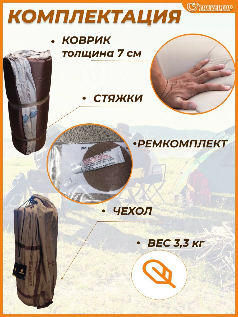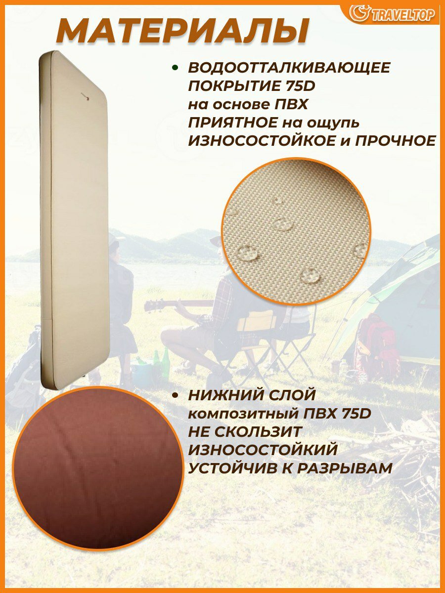 Самонадувающийся туристический коврик 200х76х7 см, Traveltop интересное: