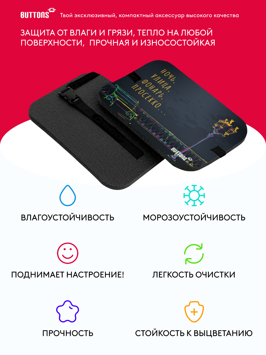 Сидушка туристическая под попу Buttons, хоба походная прямоугольная с рисунком интересное: