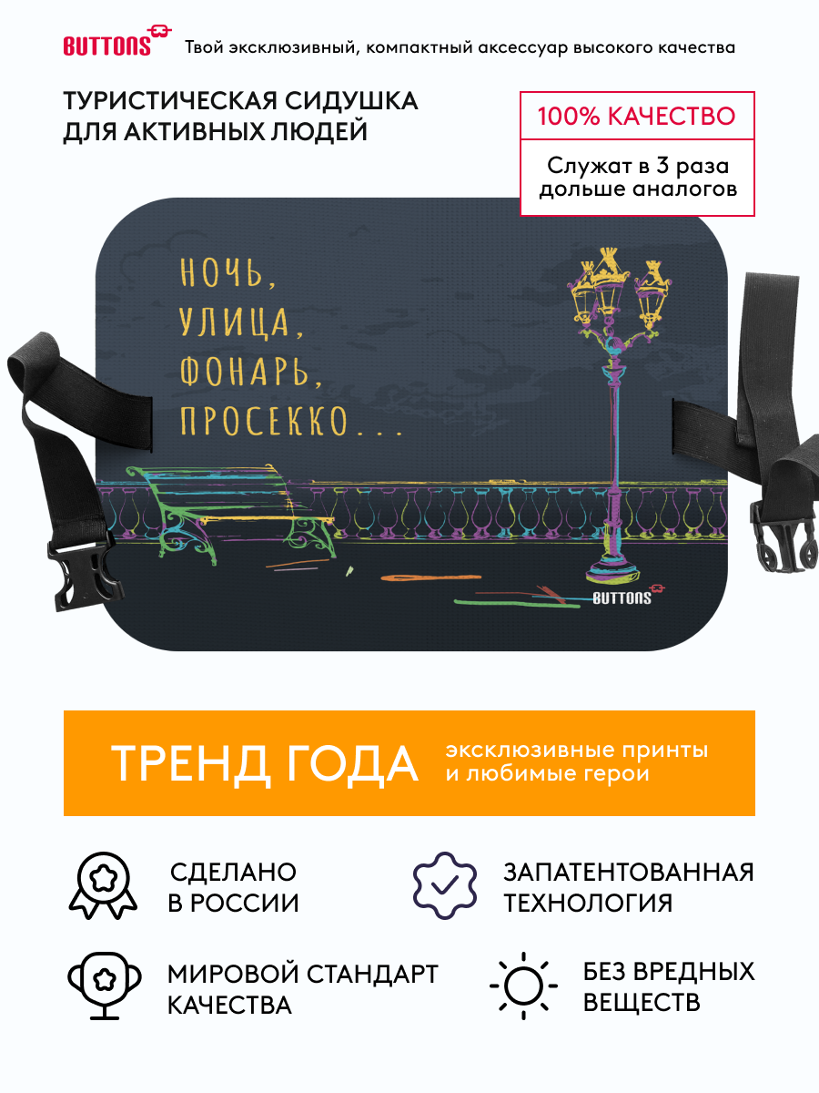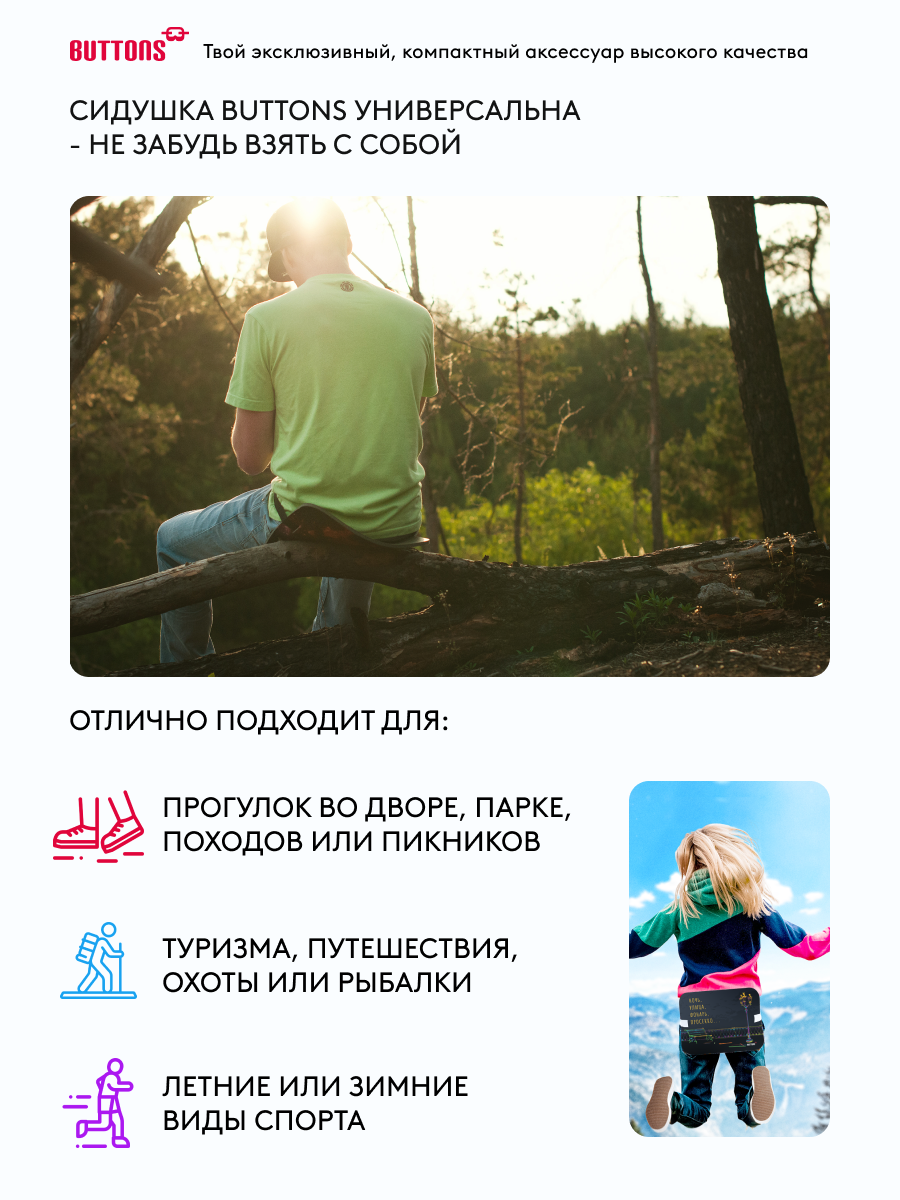 Ниже Вы можете прочитать отзывы на Сидушка туристическая под попу Buttons, хоба походная прямоугольная с рисунком, ознакомится с подробными характеристиками, посмотреть интересные обзоры и фотографии на Сидушка туристическая под попу Buttons, хоба походная прямоугольная с рисунком.