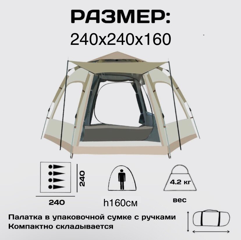 Автоматическая палатка 4-х местная 2086, 240х240х160 см интересное: