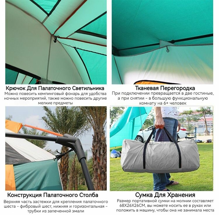 Палатка 8-12 Местная С Тамбуром И Навесом 430*305*210cm, ShopGo С Москитной Сеткой, Для Кемпинга, Туризма И Рыбалки , Для Кемпинга, Туризма И Рыбалки