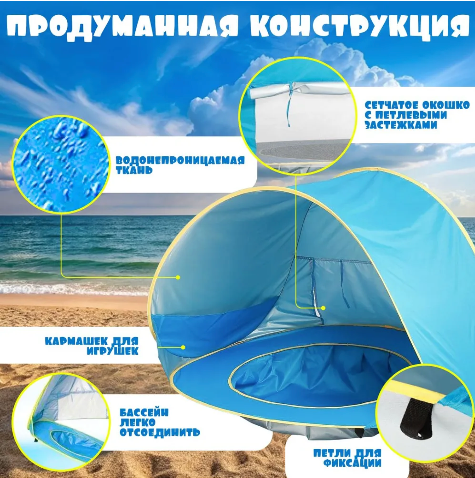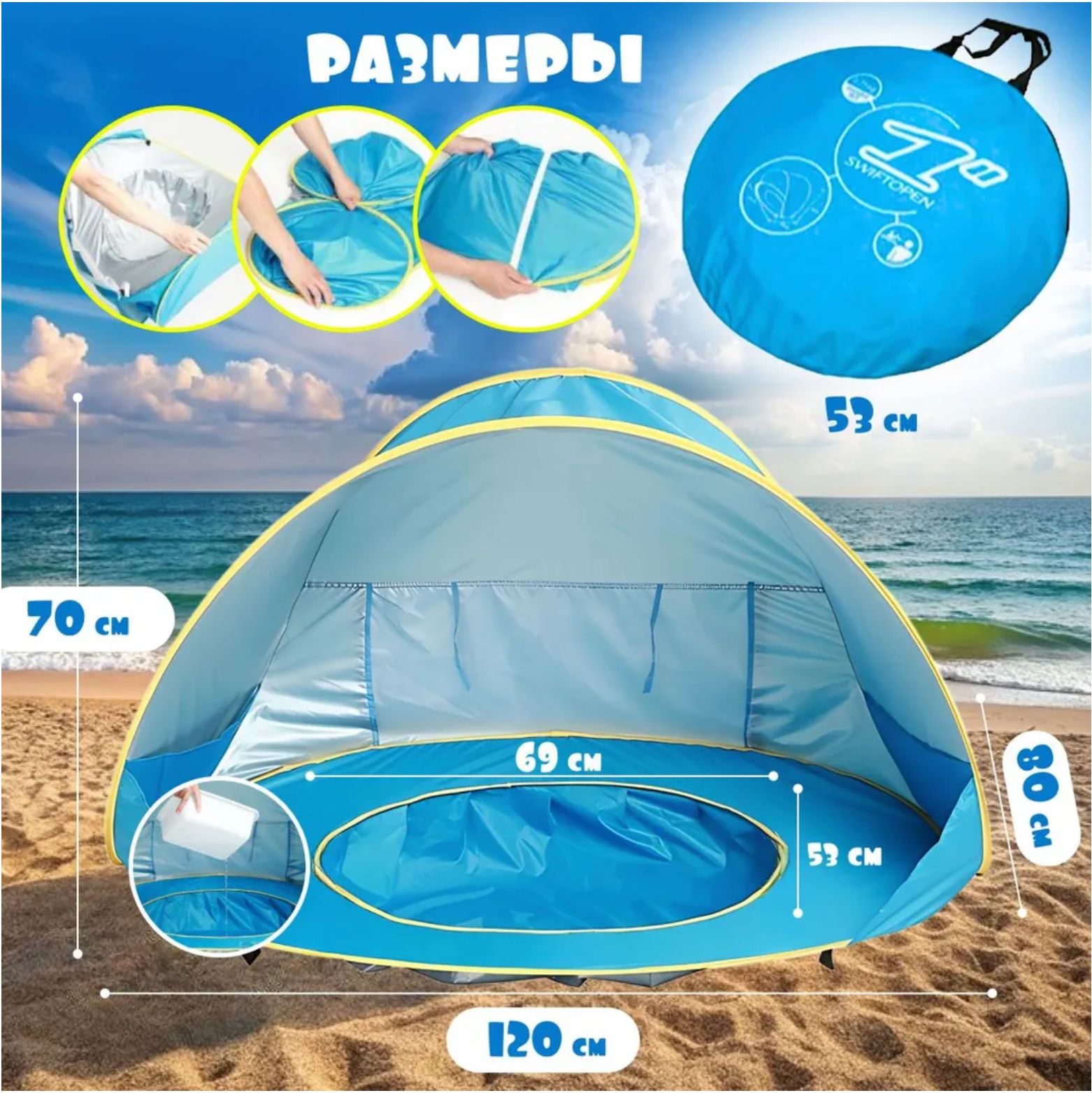 Палатка пляжная детская тент самораскладывающийся 120 х 80 х 70 см интересное: