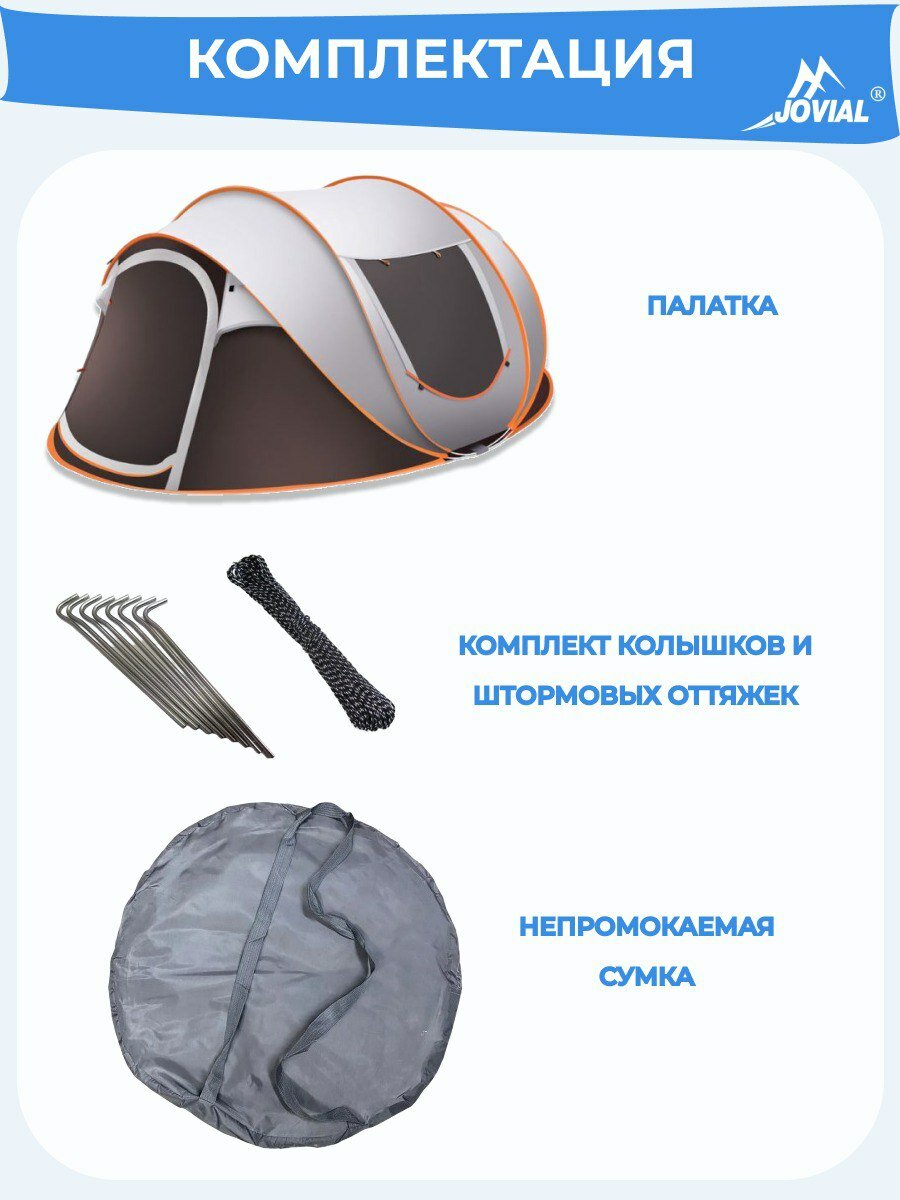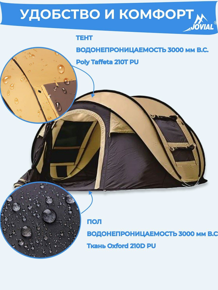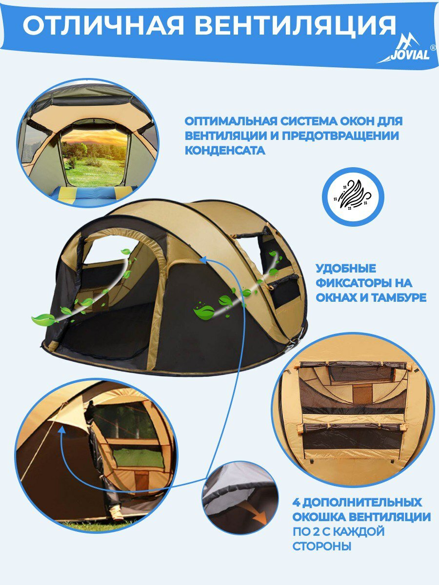 Палатка-автоматическая, 3-4 местная, Jovial,1906 280х205х120см коричнневая интересное: