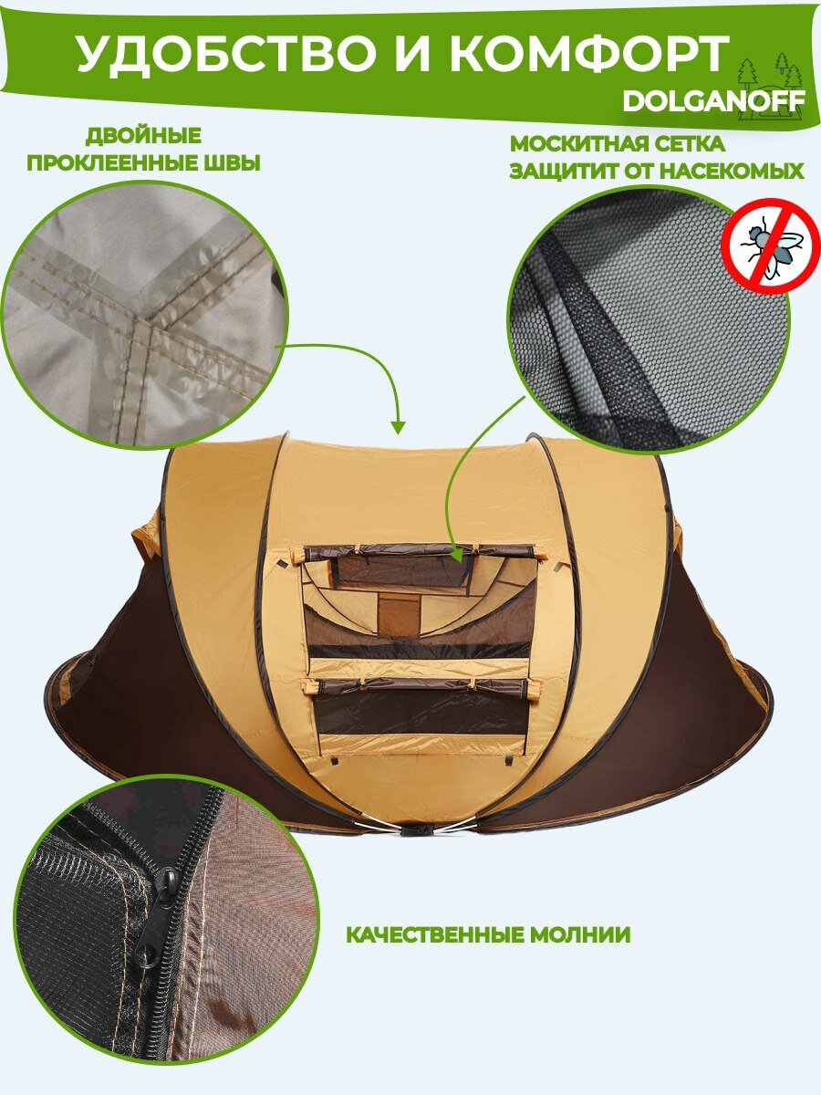 Палатка-автомат, 3-4 местная, DOLGANOFF,1906 280х205х120см коричневый интересное: