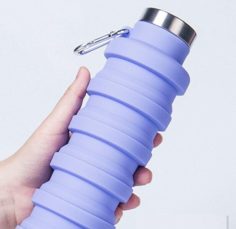 Бутылка складная силиконовая с карабином, сиреневая интересное: