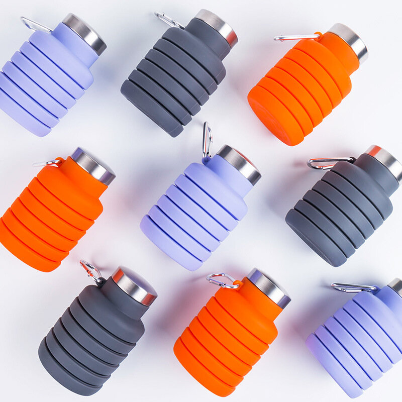 Бутылка складная силиконовая с карабином, серая