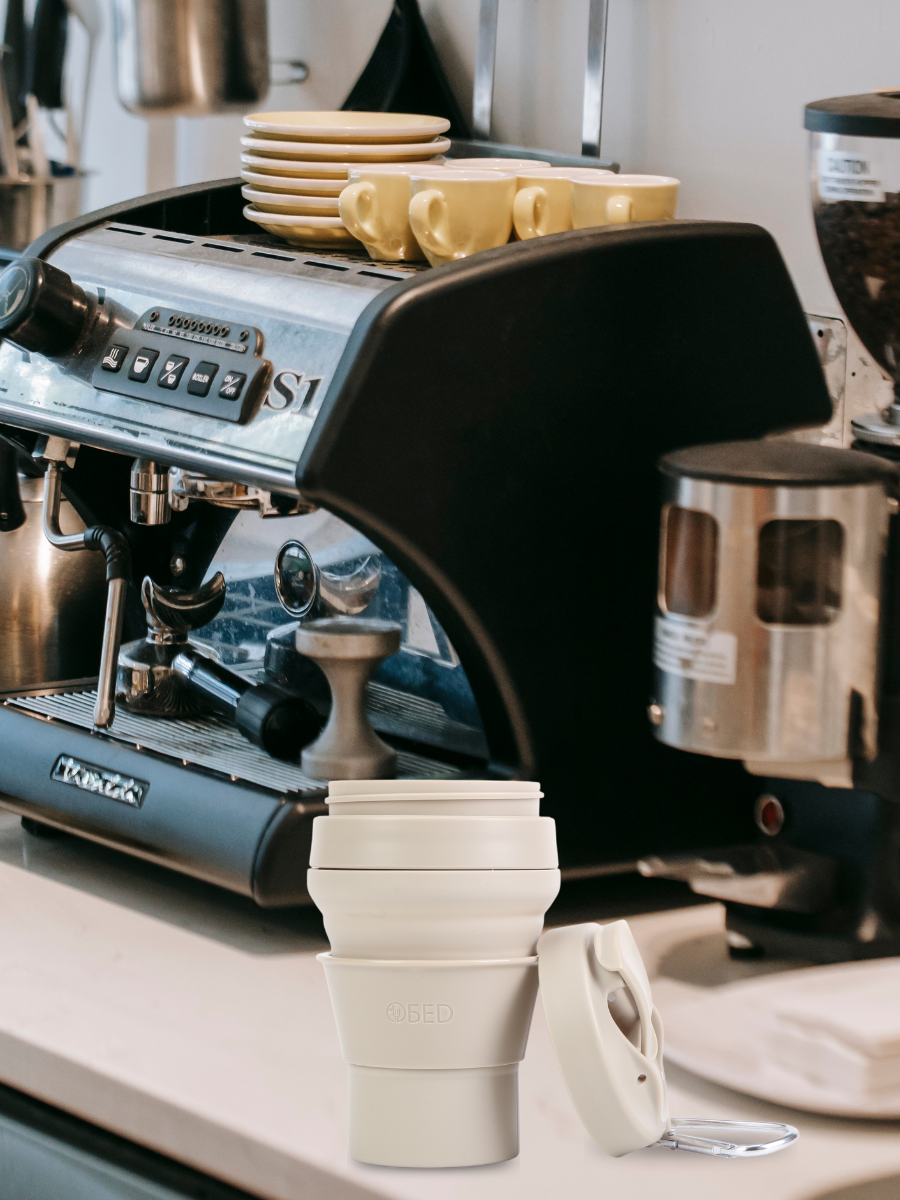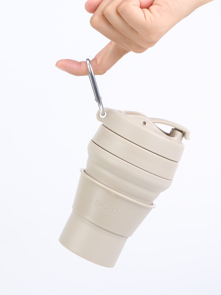 Стакан для кофе многоразовый складной с крышкой, 350 мл, серый, ОБЕD