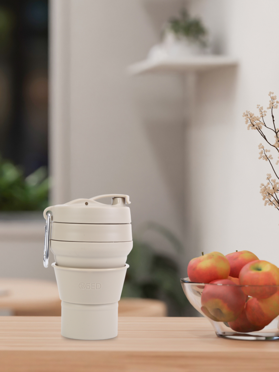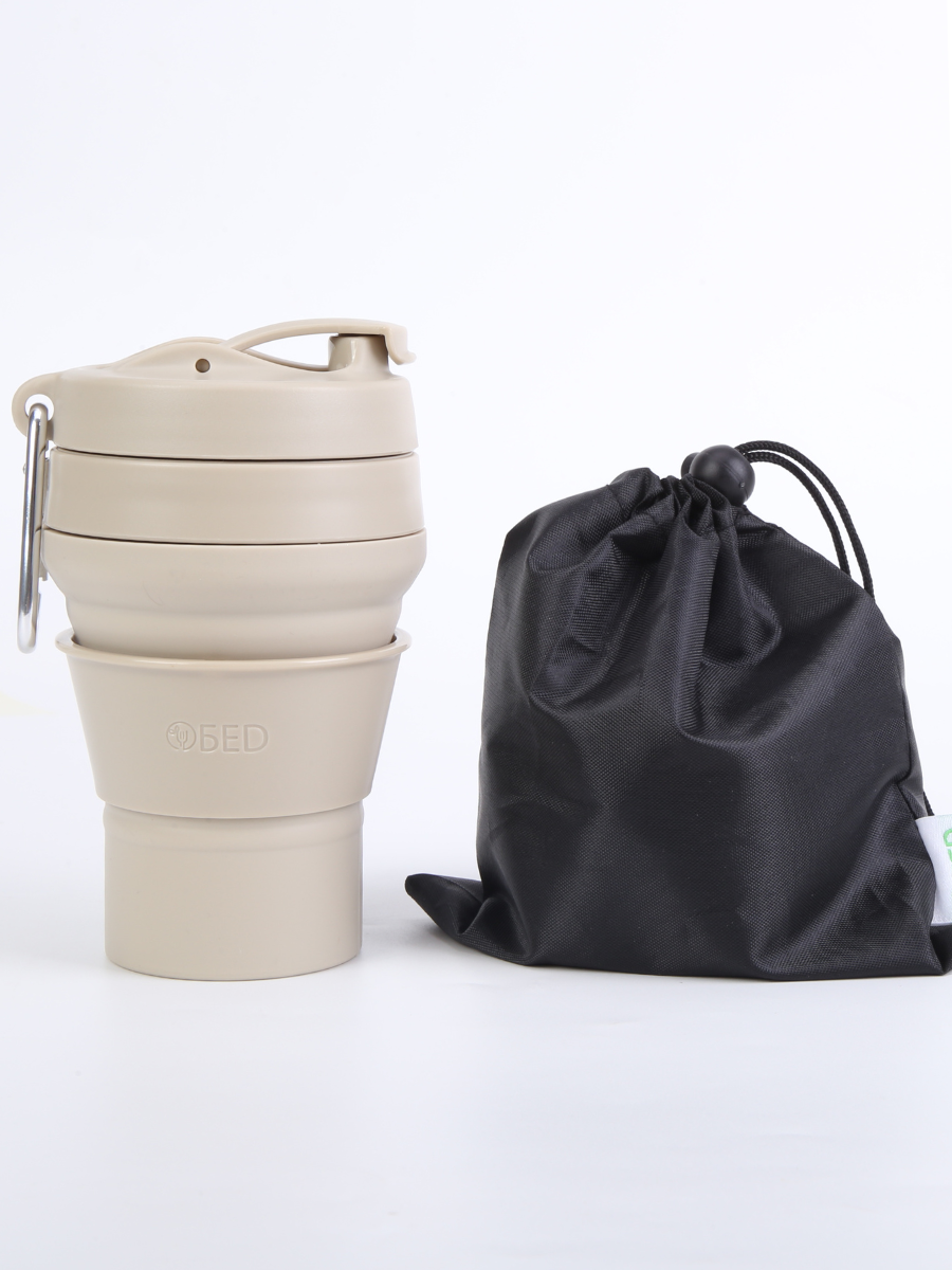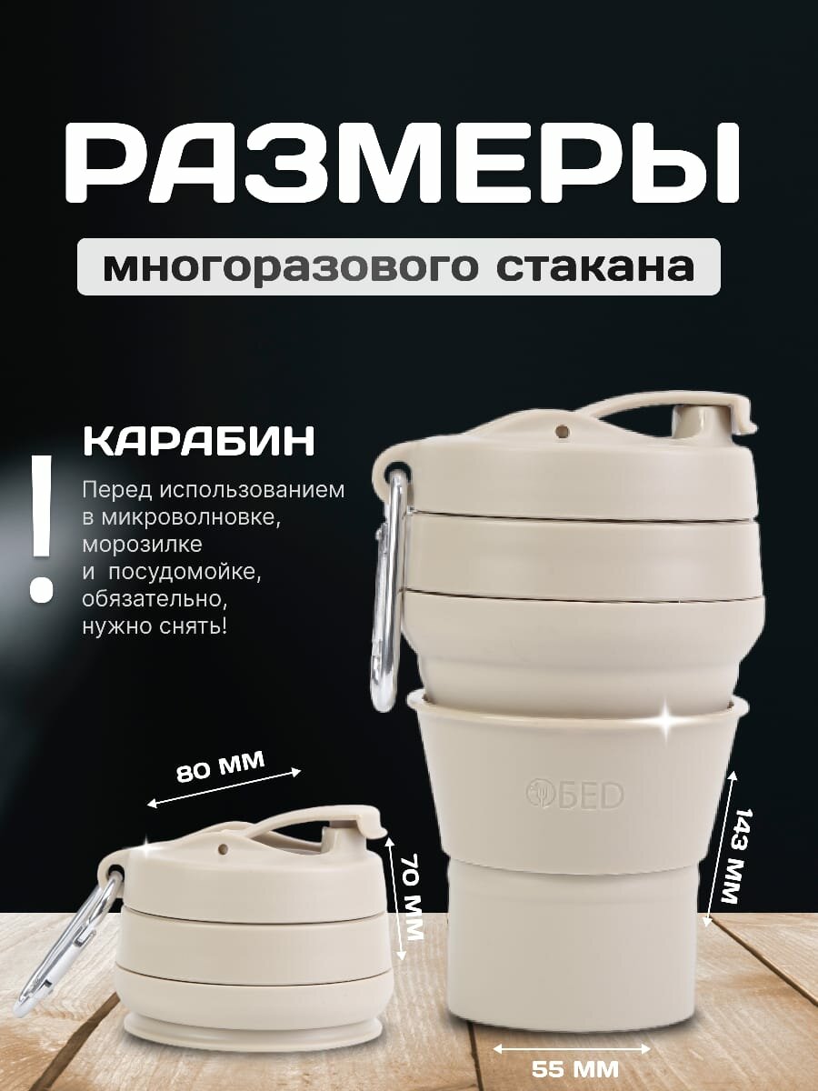 Купить Стакан складной силиконовый c крышкой для кофе многоразовый для воды, чая, с мешочком для хранения, в машину, 350 мл,бежевый, обеd