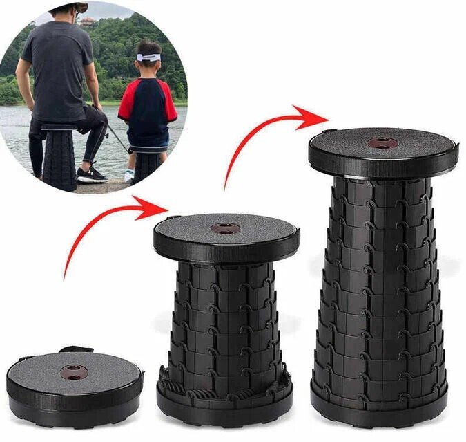 Купить Телескопический складной стул черный, табурет ( для дачи и походов )