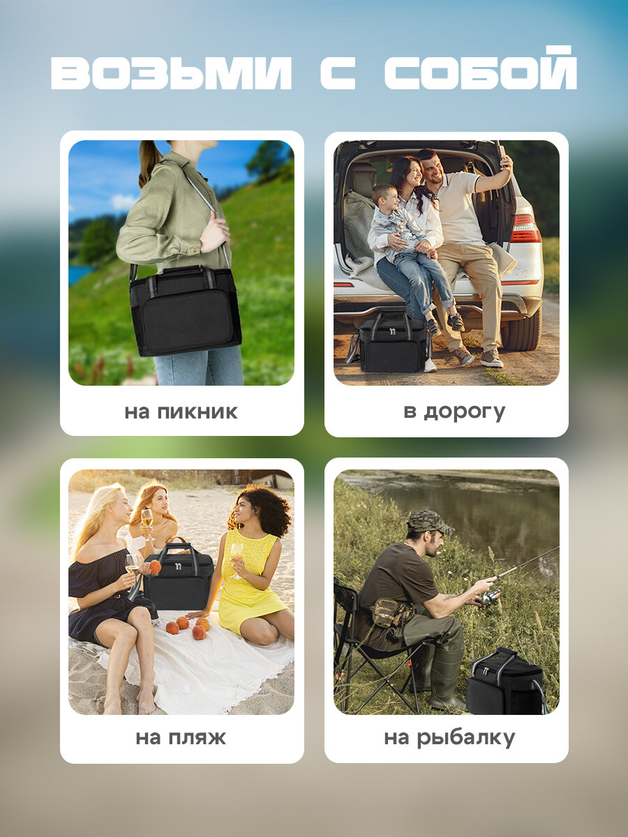 СохранитьТермосумка холодильник для продуктов и напитков / для ланча (пикника), объем 15 литров, черный + аккумулятор холода интересное: