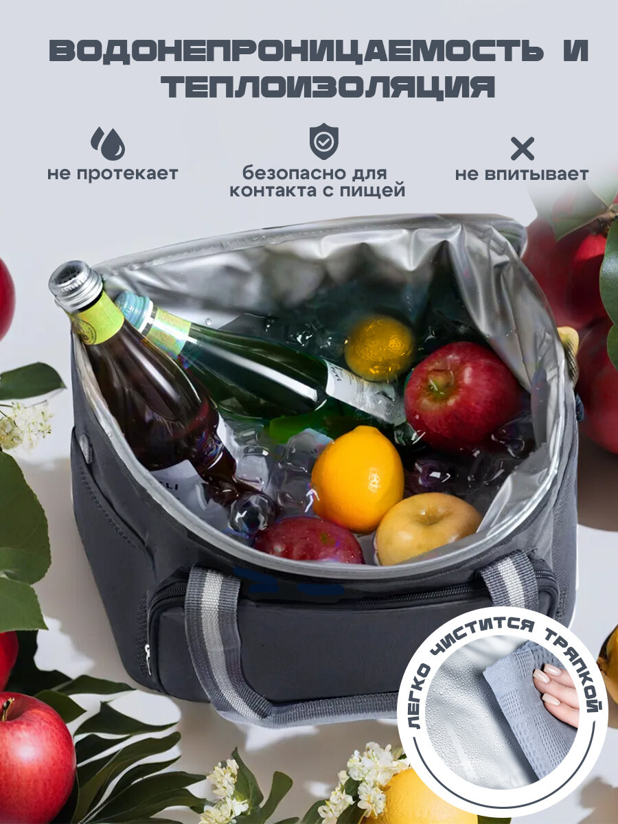 Термосумка холодильник для продуктов и напитков / для ланча (пикника), объем 15 литров, серый + аккумулятор холода
