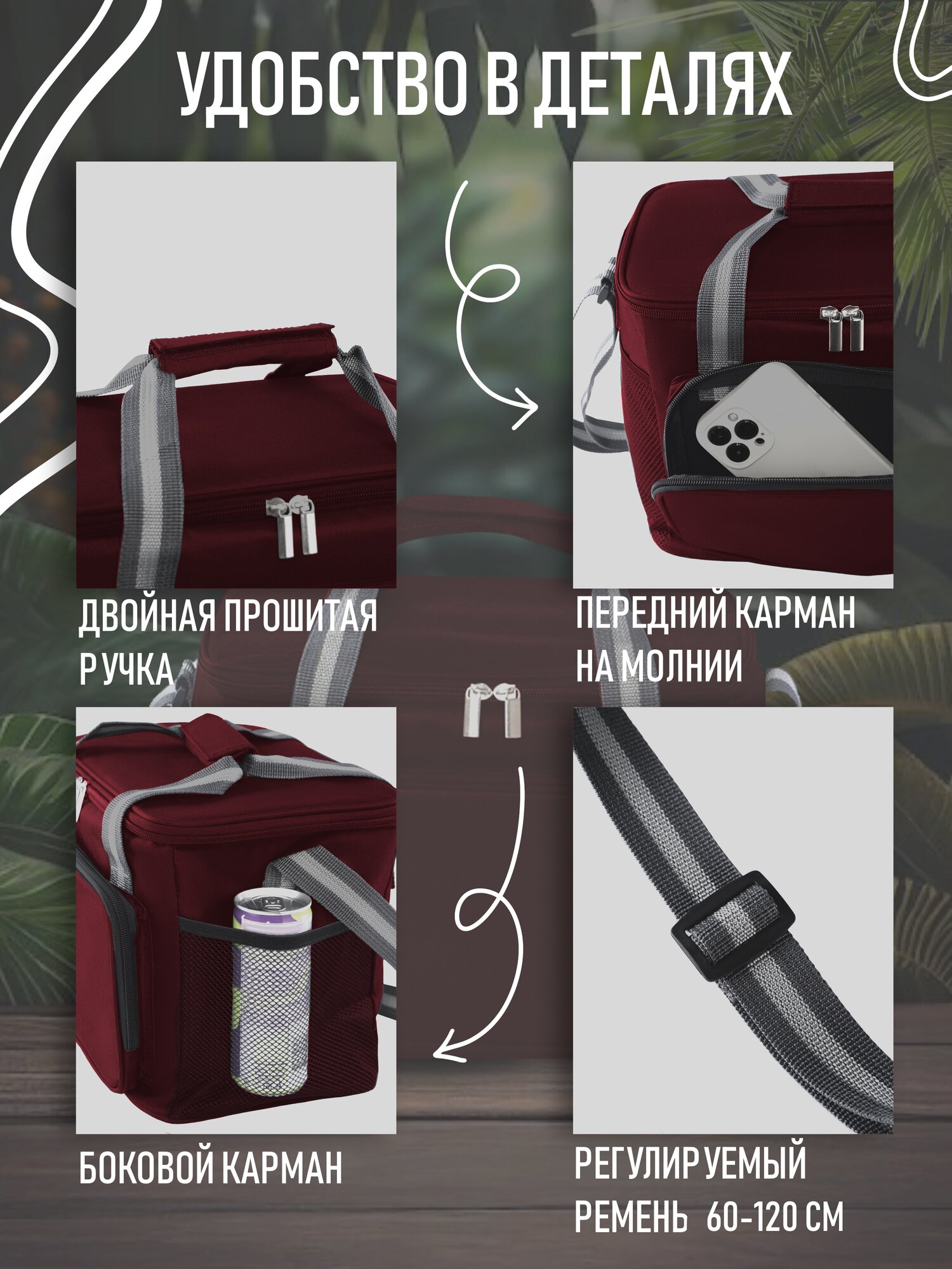 Купить Термосумка холодильник для продуктов и напитков / для ланча (пикника), объем 15 литров, бордовый + аккумулятор холода