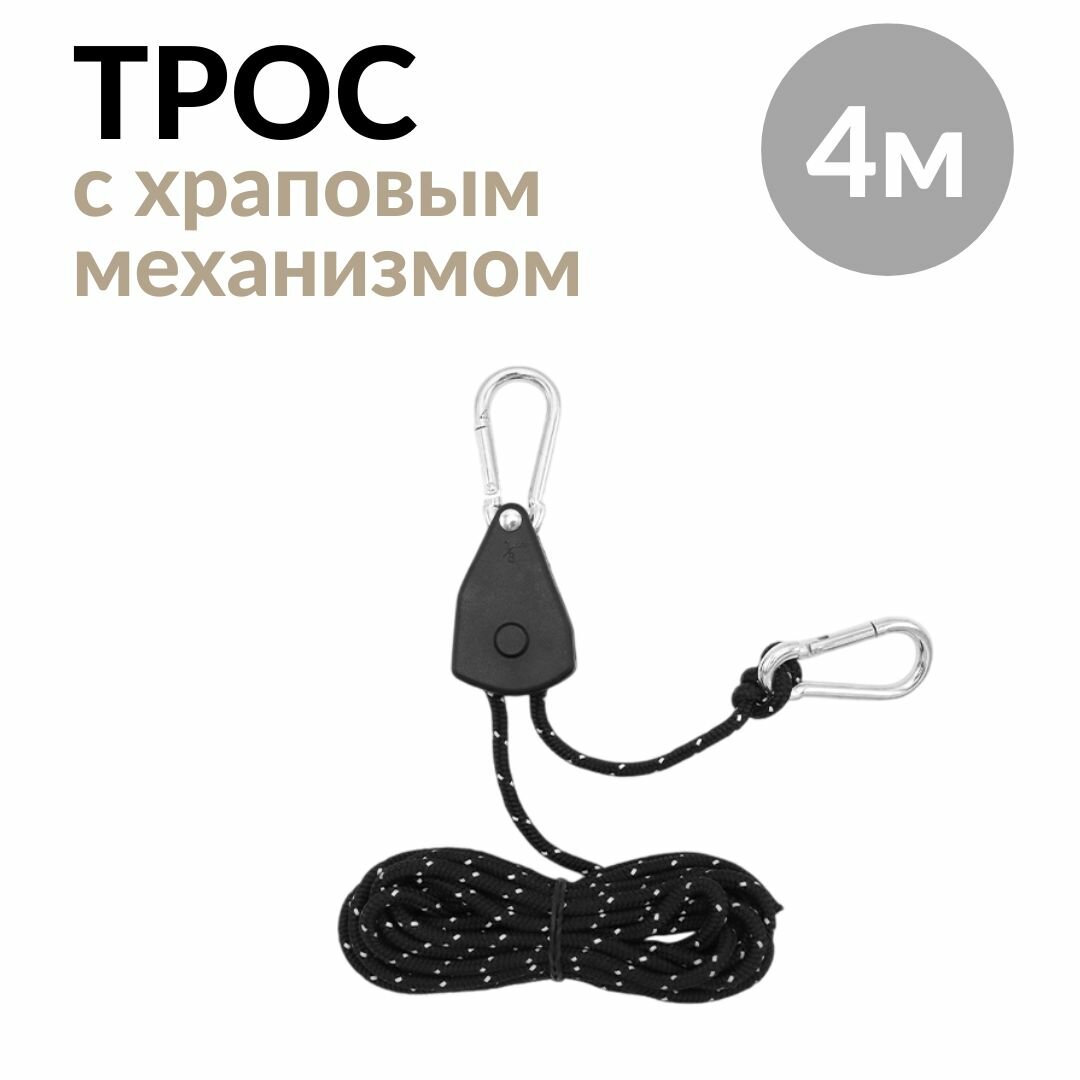 Трос 4 метра с натяжителем с храповым механизмом для шатра, палатки, навеса, тента, черный интересное: